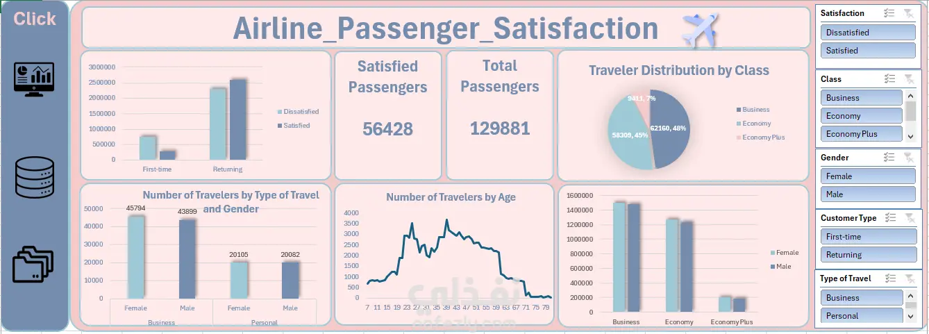 تحليل رضا ركاب الطيران (Airline Passenger Satisfaction) باستخدام Excel