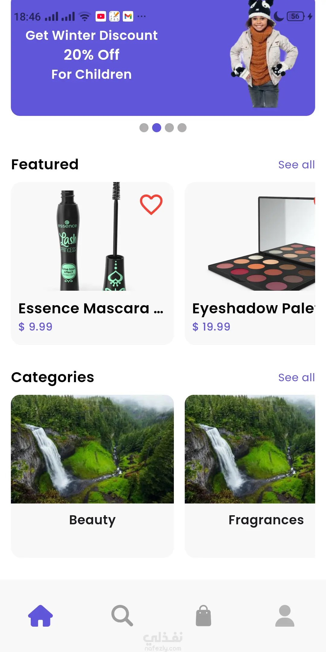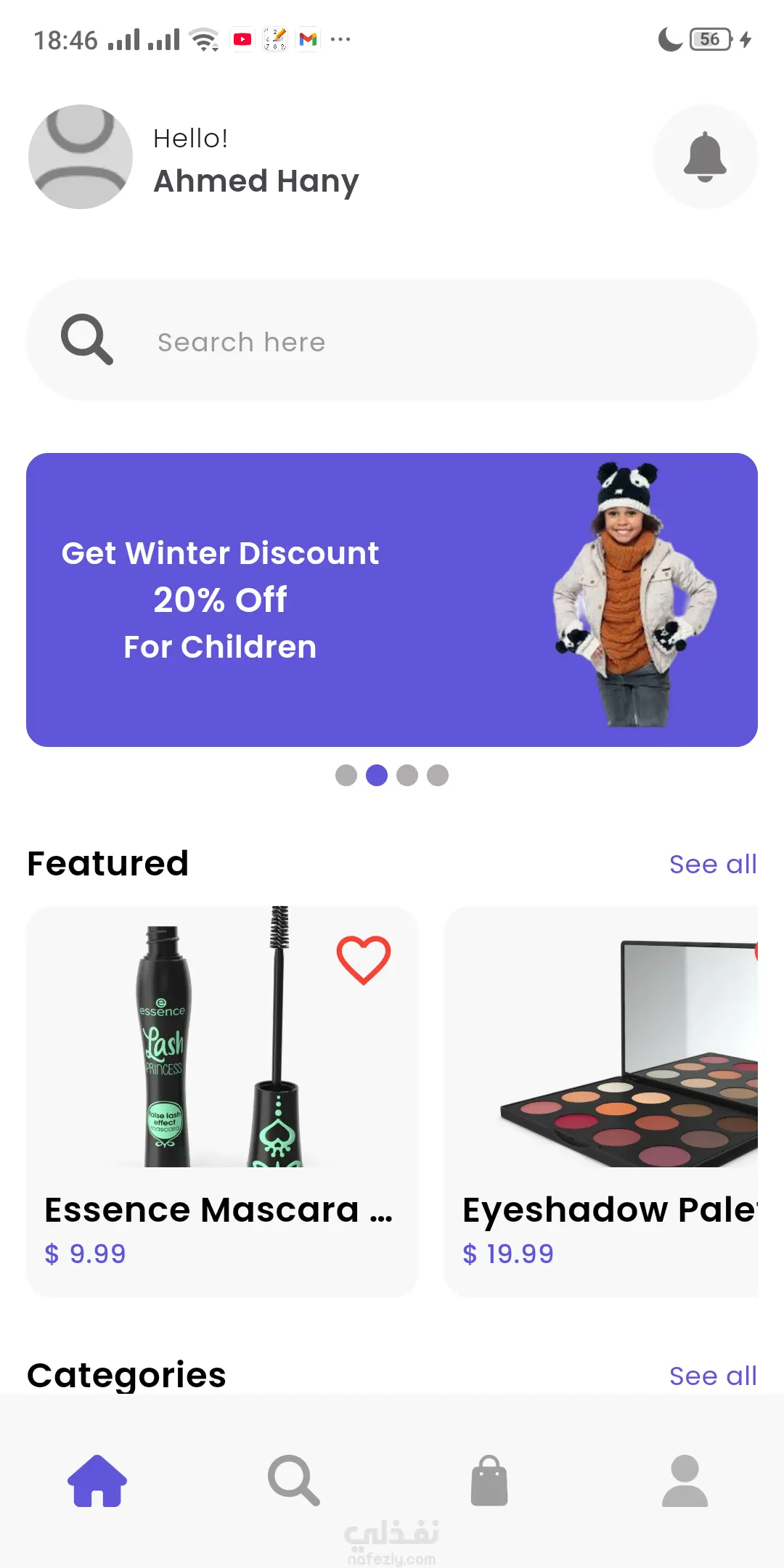تطبيق Mobile متعدد المنصات لمتجر إلكترونى تم تطويره باستخدام Flutter يحتوى على الخصائص الآتية: