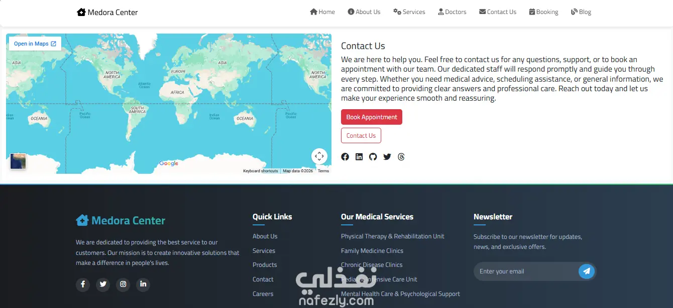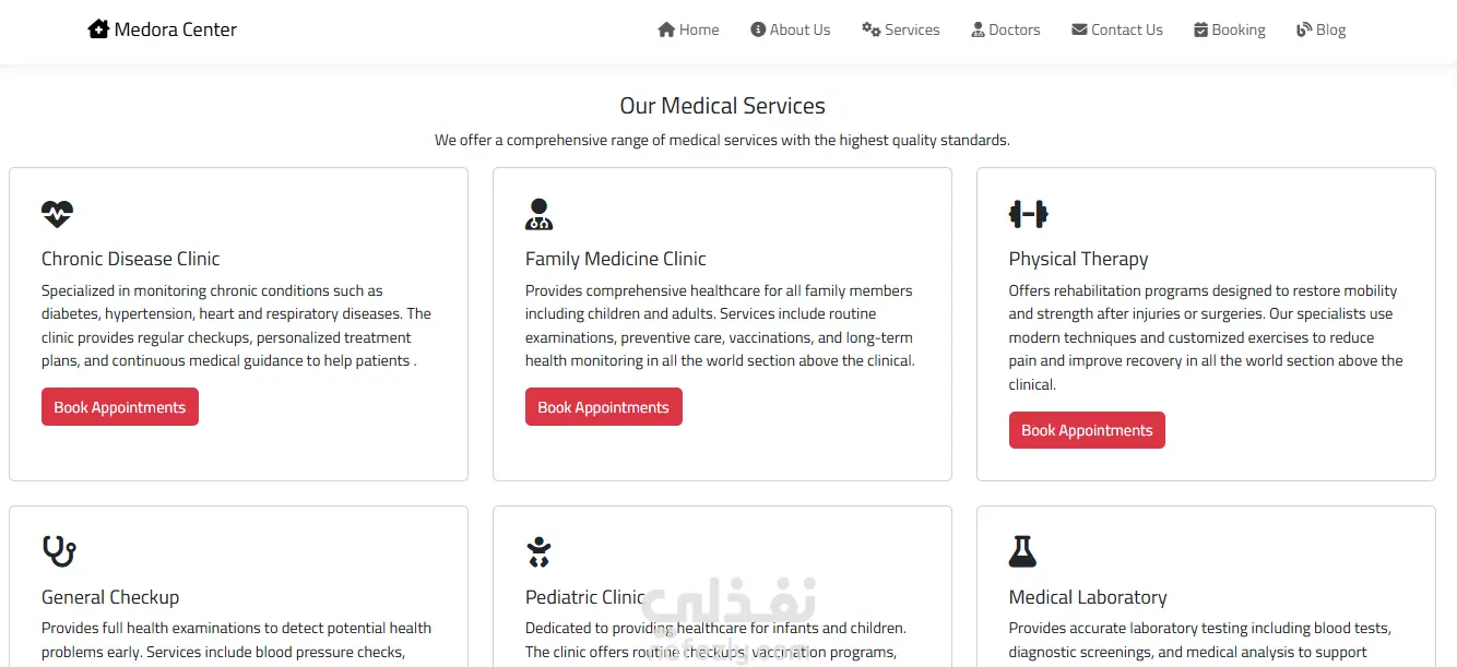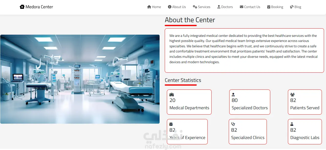 هو موقع لمركز طبي متكامل تم تطويره باستخدام **React.js**، يهدف إلى تقديم خدمات طبية مبتكرة وداعمة لصحة المجتمع، مع التركيز على توفير تجربة مستخدم سهلة، حديثة، وسلسة على جميع الأجهزة. في هذا المشروع حرصت على بناء واجهة مستخدم احترافية بتصميم عصري ومتجاوب (**Responsive Design**) ليعمل بكفاءة على شاشات الكمبيوتر، التابلت، والموبايل، مع الاهتمام بتفاصيل الـ UI/UX لتحسين سهولة الاستخدام. ✨ أبرز مميزات المشروع: - الصفحة الرئيسية تحتوي على نبذة عن المركز والخدمات - عرض الأطباء والتخصصات بشكل منظم وواضح - نظام حجز المواعيد بسهولة وسرعة - مدونة صحية لعرض المقالات والنصائح الطبية - صفحات مخصصة للخدمات، التواصل، والمدونة - نظام تسجيل دخول وإنشاء حساب - تنقل سلس بين الصفحات باستخدام React Router -مكونات قابلة لإعادة الاستخدام لسهولة التطوير والصيانة 🛠️ من خلال هذا المشروع طورت مهاراتي في: - React Components - State Management - Routing & Navigation - Responsive Design - Clean Code Structure - Reusable Components هذا المشروع كان فرصة قوية لتطبيق ما تعلمته في تطوير واجهات المستخدم وبناء مشروع واقعي يعكس بيئة العمل الحقيقية.