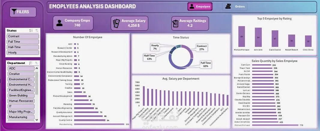 تحليل مبيعات وموظفين بواسطه اكسيل