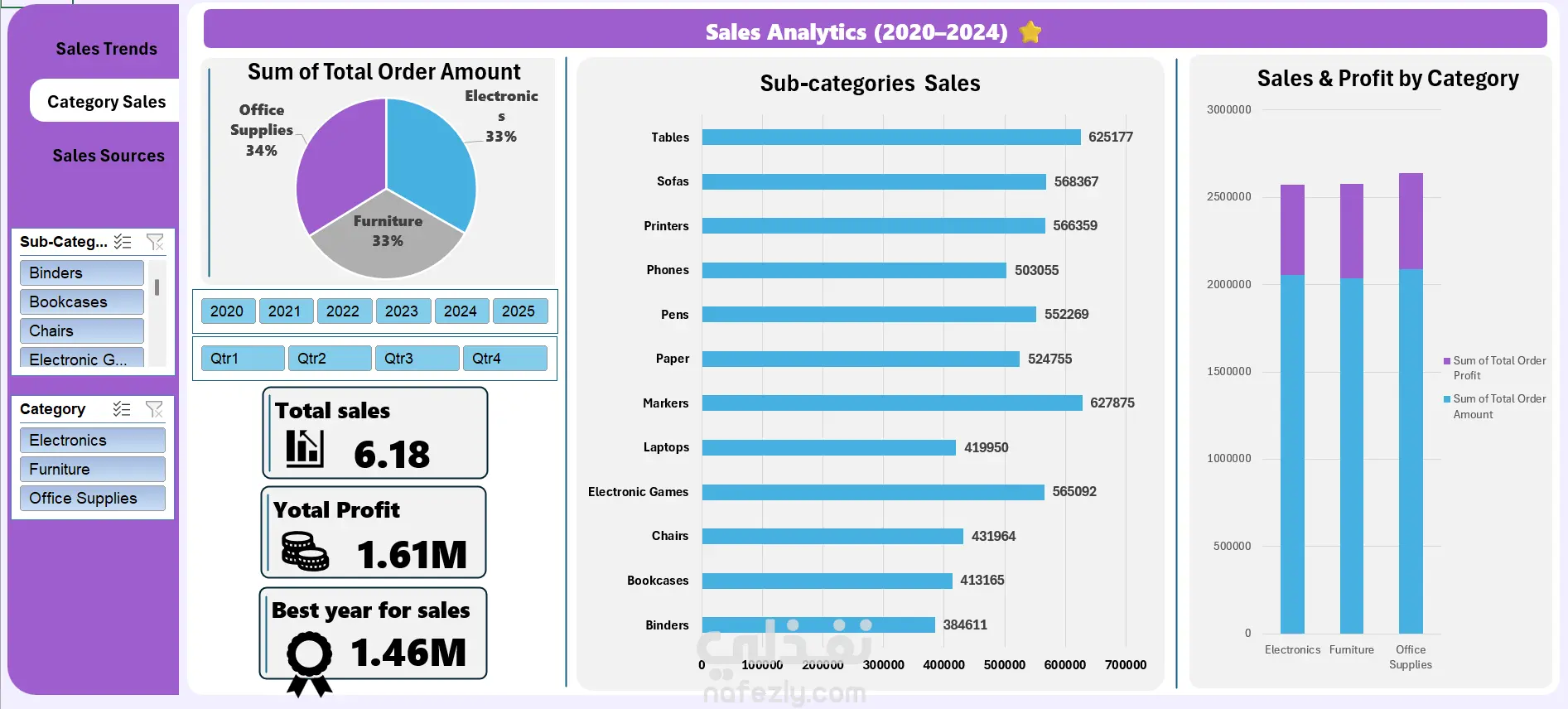 في هذا المشروع، قمت بتحويل بيانات خام ضخمة إلى رؤى بصرية واضحة لدعم عملية اتخاذ القرار. تضمن العمل الخطوات التالية: تنظيف البيانات (Data Cleaning): معالجة القيم المفقودة وإزالة التكرارات باستخدام Power Query لضمان دقة النتائج. تحليل البيانات: استخدام الـ Pivot Tables والـ Advanced Formulas لاستخراج أهم المؤشرات (KPIs) مثل إجمالي الأرباح، وأكثر المنتجات مبيعاً. تصميم لوحة التحكم: إنشاء Dashboard تفاعلية تحتوي على Slicers و Timelines لسهولة فلترة البيانات حسب التاريخ، المنطقة، أو المنتج. التنسيق: استخدام تصميم مريح للعين يركز على سهولة القراءة وتوضيح العلاقات بين المتغيرات