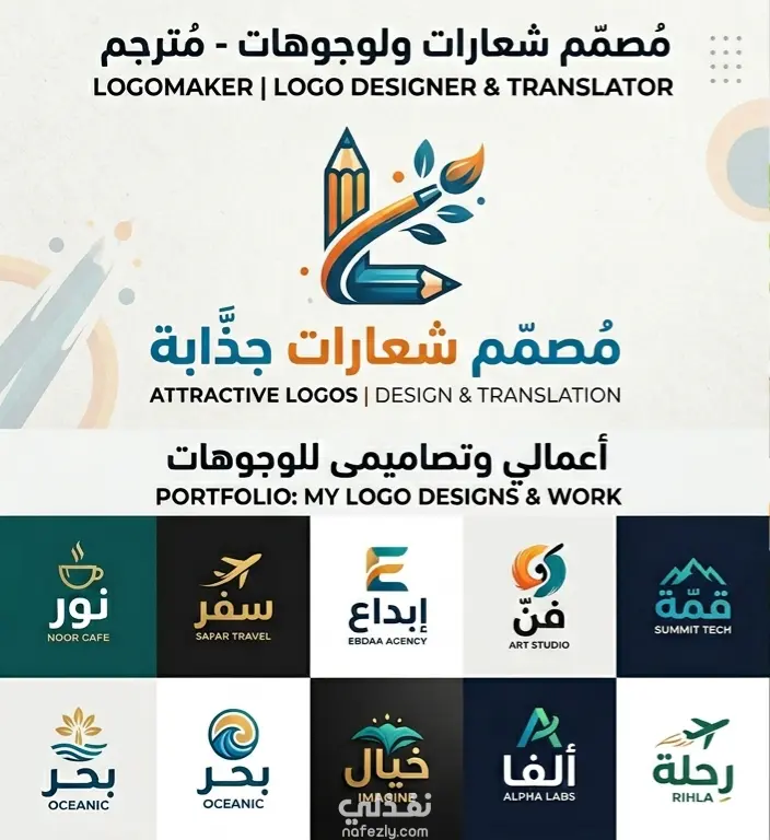. المسمى الوظيفي المقترح مترجم ومصمم هويات بصرية (Visual Identity Designer & Translator). أو: خبير تعريب وتصميم الشعارات. 2. تفصيل خدمات الترجمة لا تقتصر خدمتك على نقل الكلمات، بل تشمل: ترجمة المحتوى التسويقي: ترجمة السلوجان (Slogan) أو العبارة الترويجية للشعار بما يتناسب مع الثقافة المحلية. تعريب العلامات التجارية: تحويل النصوص من الإنجليزية للعربية (أو العكس) مع الحفاظ على روح التصميم. ترجمة ملفات التعريف (Company Profile): تقديم باقة تشمل تصميم البروفايل وترجمته بالكامل. 3. تفصيل خدمات التصميم (اللوجو) تصميم شعارات مبتكرة: (Minimalist, Wordmark, Pictorial) تناسب طبيعة النشاط التجاري. التايبوجرافي (Typography): تصميم شعارات تعتمد على الخط العربي أو الإنجليزي المبتكر. تطوير الهوية البصرية: اختيار لوحة ألوان (Color Palette) وخطوط تعبر عن رسالة البراند. 4. القيمة المضافة (لماذا يختارك العميل؟) هذه النقاط هي التي ستضعها في وصف عملك لتبدو جذاباً: التناسق الثقافي: كمتحدث ومترجم، تضمن أن الشعار والاسم المترجم لا يحملان أي معانٍ سلبية في الثقافة الأخرى. توفير الوقت والجهد: العميل لن يحتاج للبحث عن مترجم ثم مصمم؛ أنت تقوم بالمهمتين معاً لضمان تناغم النص مع الصورة. دقة التعريب البصري: القدرة على جعل الخط العربي يتماشى بانسجام مع الرموز الغربية في الشعار. 5. هيكل العرض الفني (Portfolio Structure) عندما تعرض أعمالك، قسّمها كالتالي: القسم الأول: نماذج لشعارات قمت بتصميمها (مثل التي ظهرت في الصور السابقة). القسم الثاني: نماذج لشعار قبل وبعد التعريب والترجمة. القسم الثالث: تطبيقات الهوية (كيف يظهر الشعار المترجم على الكروت، الأكياس، والموقع الإلكتروني). 6. نموذج "نبذة تعريفية" (Bio) لتضعها في حسابك: "أجمع بين قوة الكلمة وجمال التصميم. مترجم ومصمم شعارات متخصص في بناء الهويات البصرية المتكاملة. أساعدك على عبور الحدود بعلامتك التجارية من خلال تصميم شعارات احترافية وترجمتها لغوياً وبصرياً لتناسب جمهورك المستهدف بدقة وإبداع." هل تريد مني كتابة أسعار مقترحة لخدماتك أو صياغة عرض لعميل (Pitch)؟