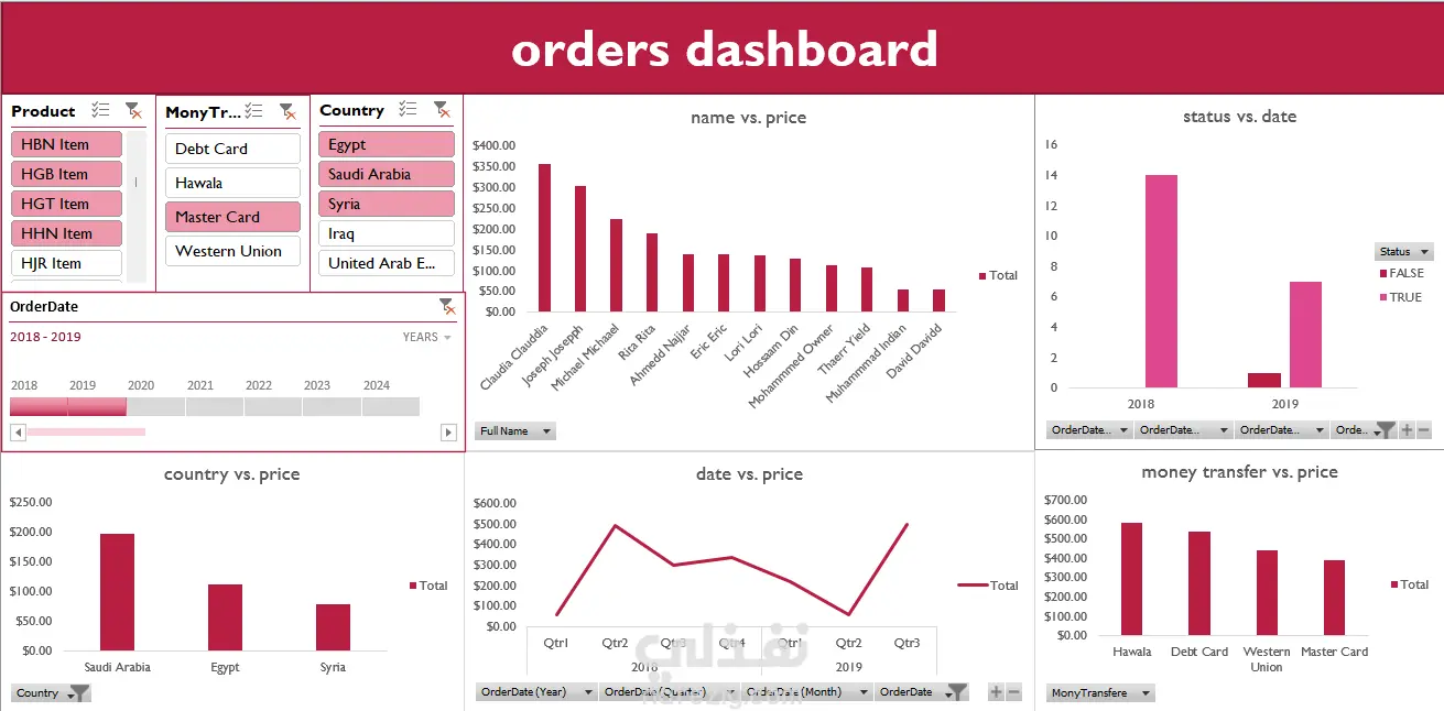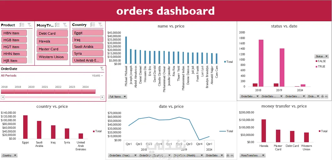 تصميم وتنفيذ لوحة تحكم (Dashboard) شاملة لتحليل بيانات المبيعات والطلبات لأكثر من 5 سنوات، بهدف تحويل البيانات الخام إلى رؤى بصرية تدعم اتخاذ القرار. المهام التي قمت بها: -معالجة البيانات: تنظيف وفلترة البيانات لضمان الدقة بنسبة %100. -هيكلة البيانات: تنظيم قواعد البيانات وربط الجداول (Data Modeling). -التصميم البصري: بناء رسوم بيانية تفاعلية تعكس أهم مؤشرات الأداء (KPIs) مثل (أعلى الموظفين مبيعاً، أكثر الدول ربحية، وتوقعات المبيعات الزمنية). -التفاعلية: إضافة فلاتر ذكية (Slicers) تتيح للمستخدم استخراج التقارير المخصصة في ثوانٍ. الأدوات المستخدمة: Excel: (Pivot Tables, Advanced Formulas, Dashboards).