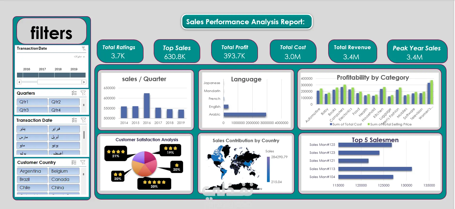 تقرير تحليل أداء المبيعات العالمي (2014 - 2019) وتصميم لوحة تحكم تفاعلية