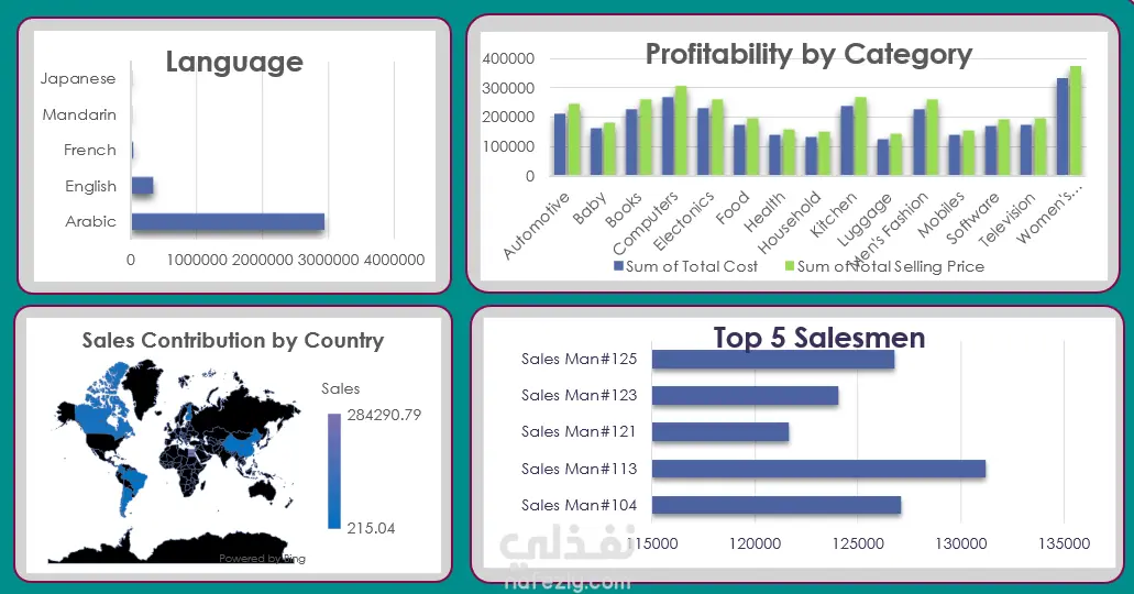 في هذا المشروع، قمت بتحليل مجموعة بيانات ضخمة لمبيعات عالمية تغطي عدة سنوات، بهدف استخراج رؤى دقيقة حول الأرباح وسلوك العملاء. تضمن المشروع الآتي: تحليل المؤشرات المالية (Financial Metrics): حساب وعرض إجمالي الإيرادات (3.4M)، صافي الأرباح (393.7K)، وإجمالي التكاليف بشكل لحظي. تحليل المبيعات الجغرافية: استخدام الخرائط التفاعلية (Map Charts) لتوضيح مساهمة كل دولة في إجمالي المبيعات، مما يسهل تحديد الأسواق الأكثر ربحية. تقييم أداء فريق البيع: تصميم نظام ترتيب لأفضل 5 موظفي مبيعات (Top 5 Salesmen) بناءً على الأداء الفعلي. تحليل رضا العملاء: بناء مخطط دائري (Pie Chart) لتحليل مستويات رضا العملاء وتقييماتهم (Customer Satisfaction Analysis). فلترة البيانات المتقدمة: إضافة لوحة تحكم جانبية (Filters) تتيح للمستخدم تصفية البيانات حسب: التاريخ (بالسنة، الربع سنوي، والشهر). الدولة (أكثر من 10 دول مختلفة). الجانب التقني: تم الاعتماد على Pivot Tables و Slicers و Advanced Formatting لضمان استجابة لوحة التحكم مع أي تغيير في الاختيارات