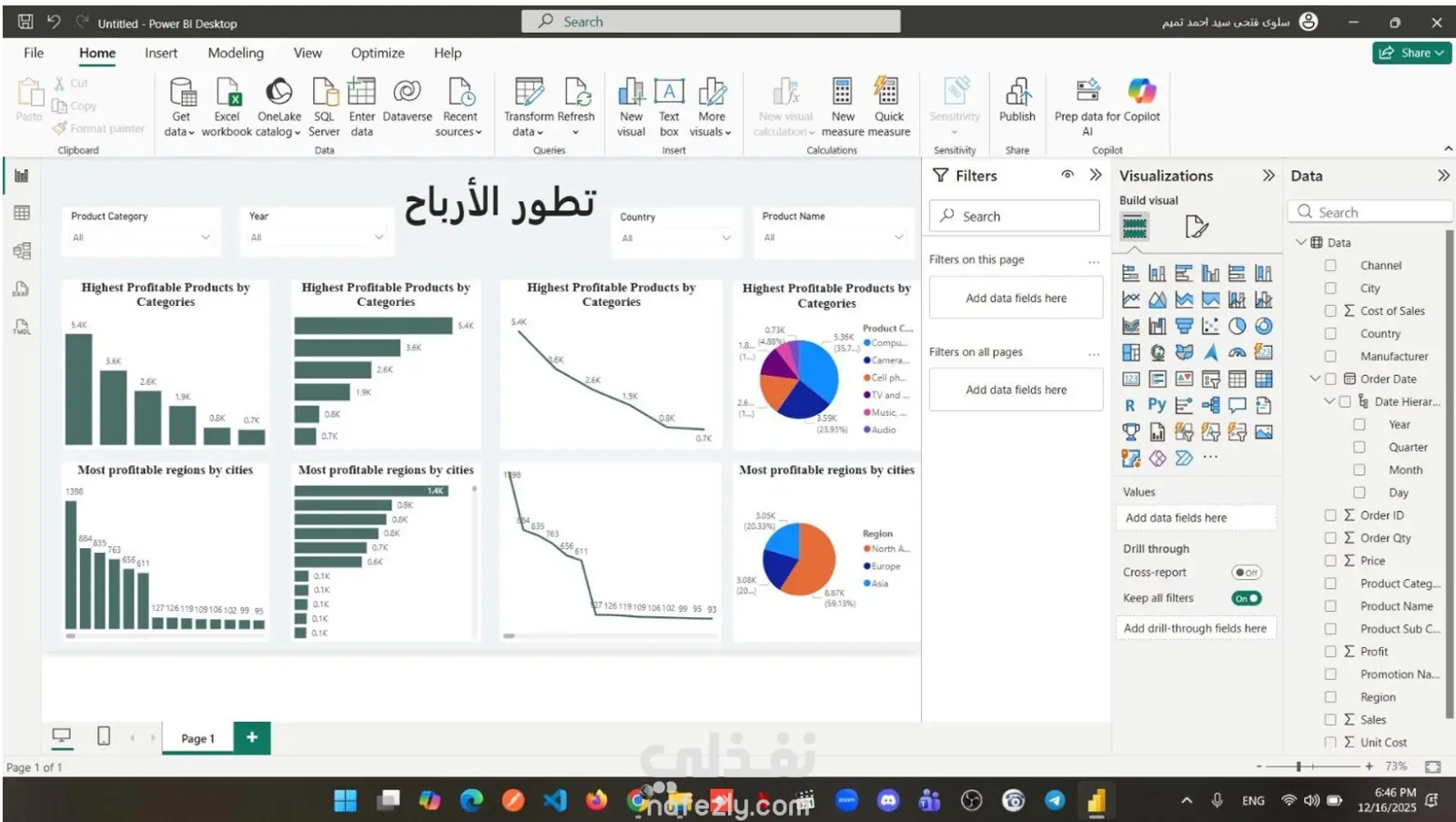 📊 Dashboard تحليل الأرباح باستخدام Power BI قمت بتصميم لوحة تحكم تفاعلية لتحليل تطور الأرباح عبر مختلف الأبعاد مثل الفئات، المنتجات، الدول، والمدن، باستخدام Power BI، بهدف تقديم رؤية شاملة تساعد في تحسين الأداء واتخاذ قرارات استراتيجية. 🔹 أهم مميزات الداشبورد: تحليل تطور الأرباح عبر الزمن عرض أكثر المنتجات تحقيقًا للربح حسب الفئات المختلفة تحليل أكثر المناطق والمدن ربحية مقارنة الأداء بين القارات (Asia, Europe, North America) استخدام فلاتر تفاعلية (Category, Year, Country, Product Name) لتخصيص التحليل بسهولة عرض البيانات باستخدام عدة أنواع من الرسوم (Bar Chart, Line Chart, Pie Chart) 🔹 التقنيات المستخدمة: Power BI Data Modeling DAX Interactive Filters (Slicers) 🎯 تم تصميم الداشبورد بشكل بسيط واحترافي يركز على وضوح البيانات وسهولة التفاعل، مما يساعد المستخدم على استكشاف الأنماط واتخاذ قرارات مبنية على بيانات دقيقة.