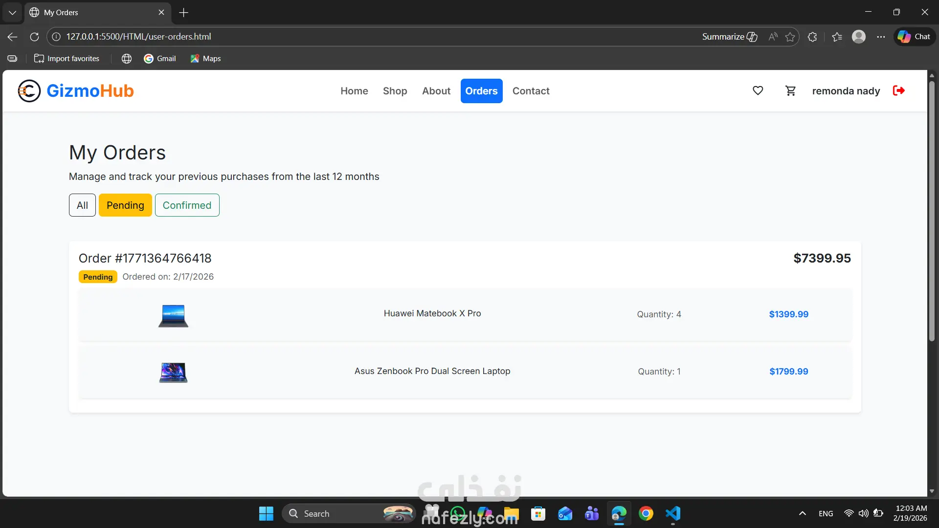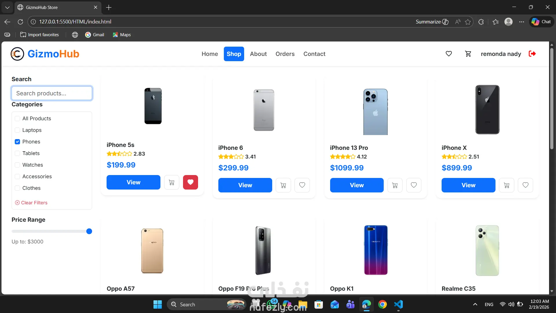 اسم المشروع مشروع متجر إلكتروني يهدف إلى تسهيل عملية عرض وبيع المنتجات أونلاين، من خلال واجهة مستخدم سهلة وتجربة استخدام سلسة، مع تنظيم المنتجات وإمكانية إضافتها إلى سلة المشتريات. مميزات المشروع عرض المنتجات (صور – اسم – سعر – وصف) سلة مشتريات (Cart) لإضافة وحذف المنتجات تصميم متجاوب مع جميع الأجهزة واجهة مستخدم عصرية وسهلة الاستخدام سرعة في الأداء والتنقل بين الصفحات الوظائف (Functionalities) تصفح المنتجات عرض تفاصيل المنتج إضافة/حذف من سلة المشتريات حساب إجمالي السعر التنقل بين الصفحات بسهولة