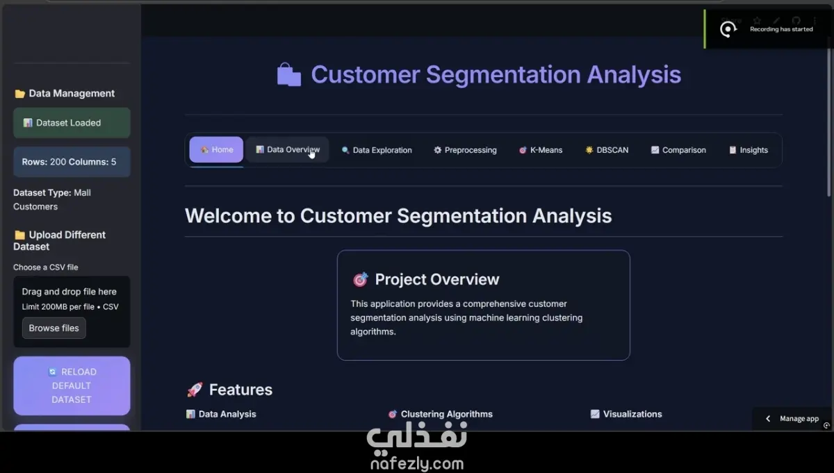 مشروع يهدف إلى تقسيم العملاء إلى مجموعات بناءً على سلوك الشراء باستخدام تقنيات التعلم غير الموجه، لمساعدة الشركات في تحسين استراتيجيات التسويق. مميزات العمل: تطبيق خوارزميات K-Means و DBSCAN لتقسيم العملاء تحديد العدد الأمثل للمجموعات باستخدام Elbow Method و Silhouette Score تحليل سلوك العملاء واستخراج أنماط الشراء إنشاء dashboards ورسوم تفاعلية لعرض النتائج تقديم توصيات عملية لتحسين التسويق وزيادة المبيعات