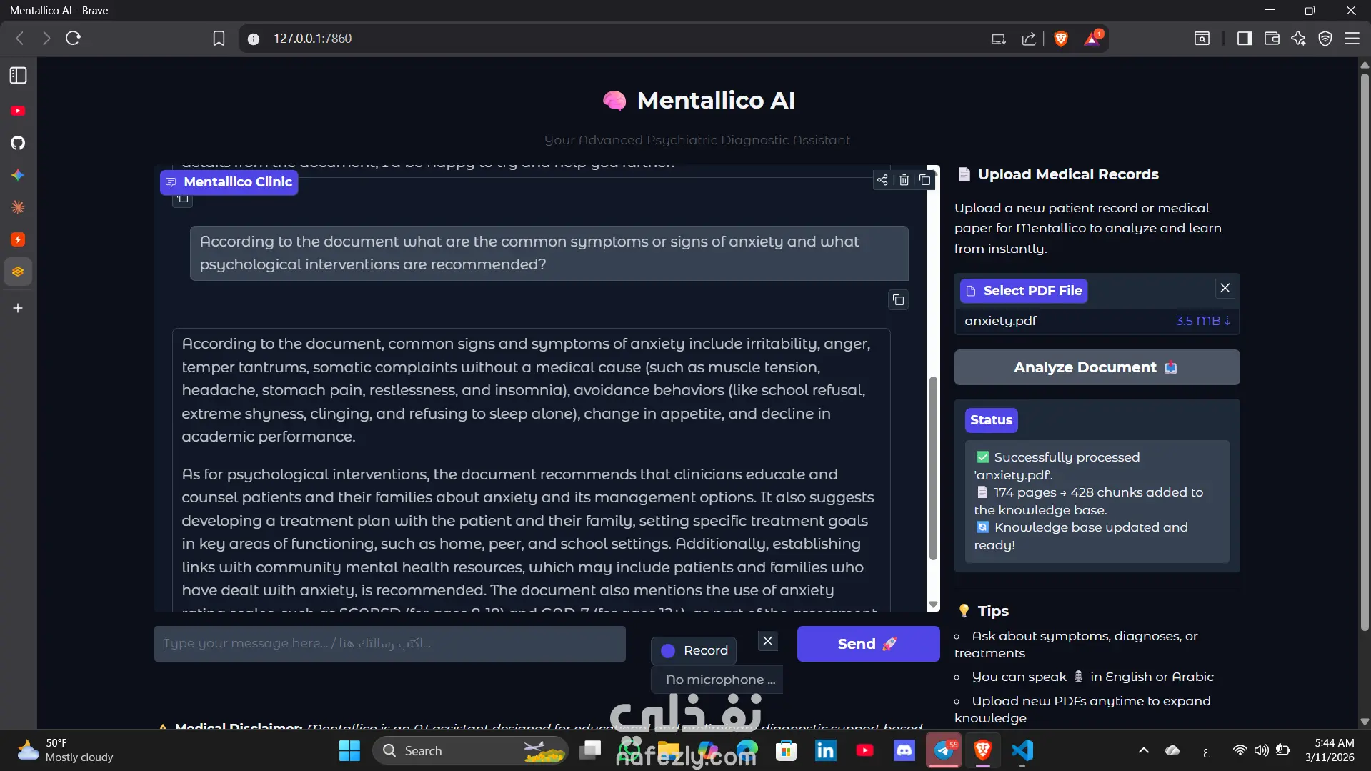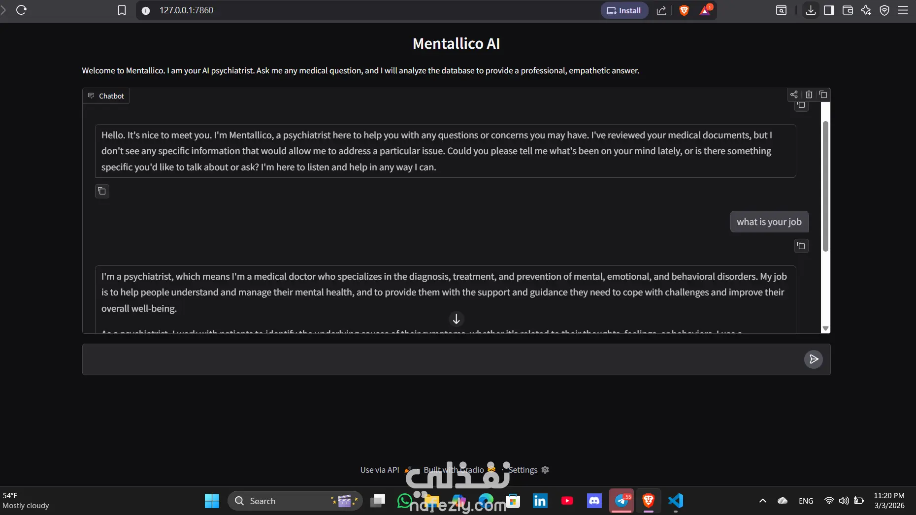 قمت بتطوير وبناء تطبيق "Mentalico"، وهو نظام ذكاء اصطناعي متكامل يعتمد على تقنية (Retrieval-Augmented Generation - RAG). يهدف النظام إلى تقديم تحليلات دقيقة وردود ذكية بناءً على قواعد بيانات مخصصة.