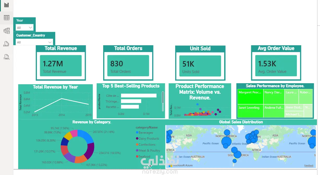 تصميم تصورات مرئية (Data Visualizations) تفاعلية وواضحة تلخص أداء المتجر.