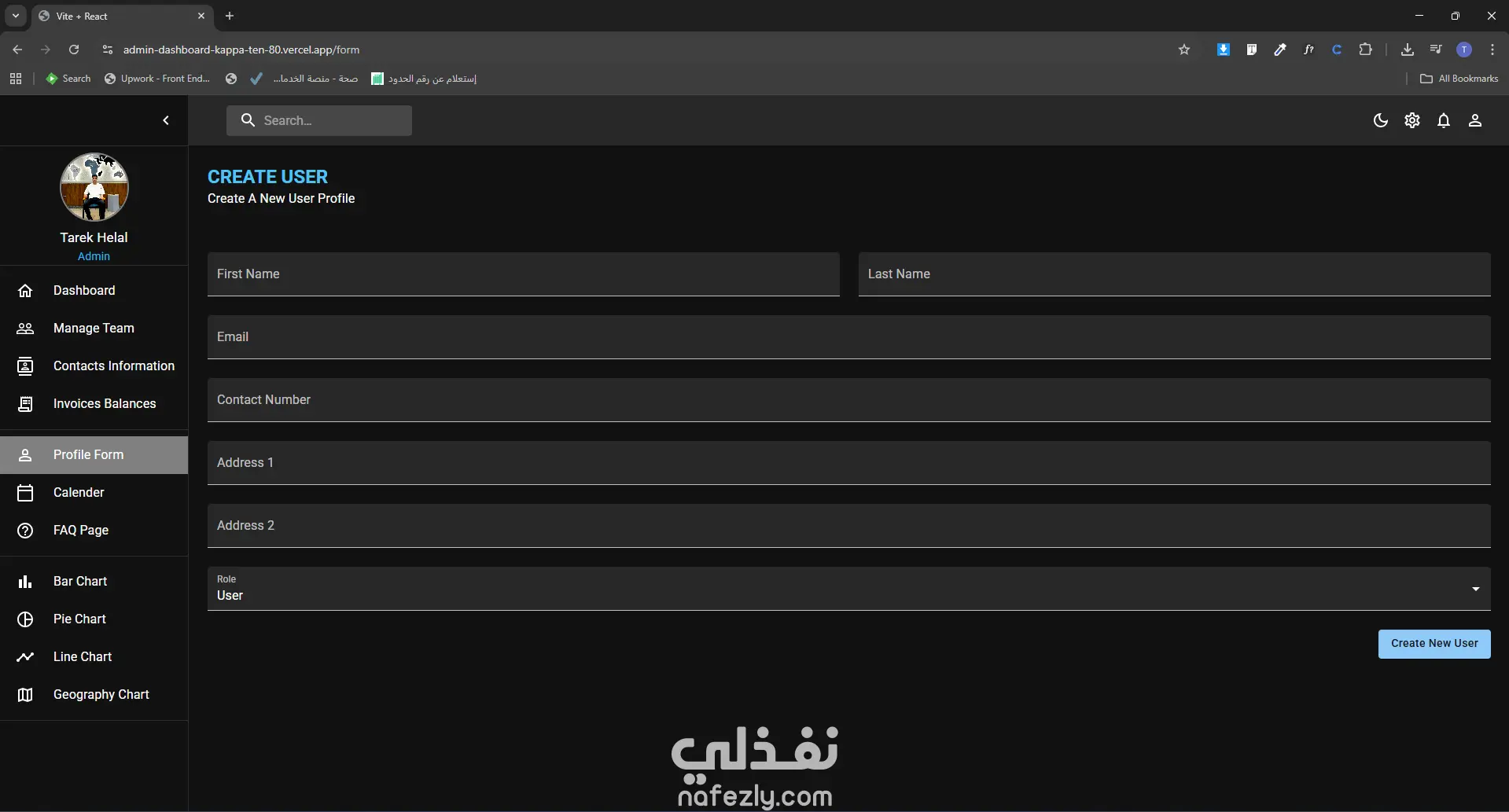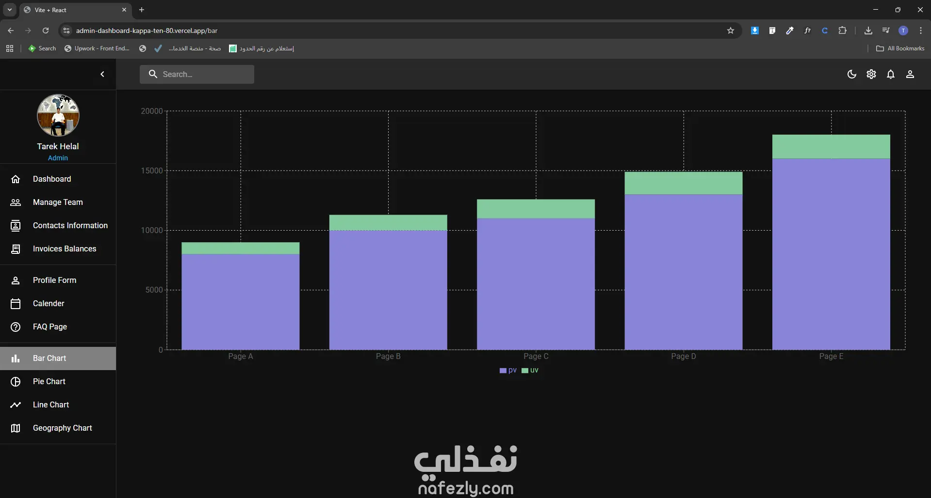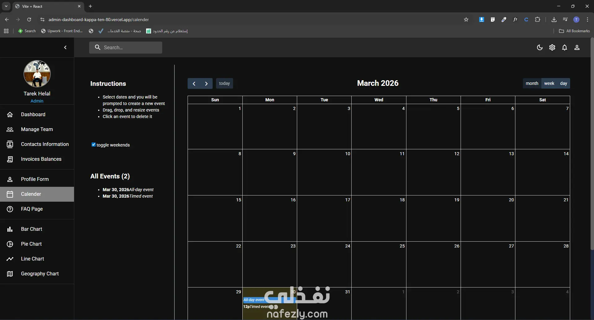 داشبورد للتحكم في موقعك