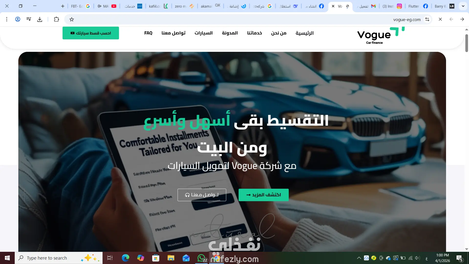 تم تصميم وتطوير موقع إلكتروني لشركة Vogue المتخصصة في تمويل السيارات بالتقسيط.
