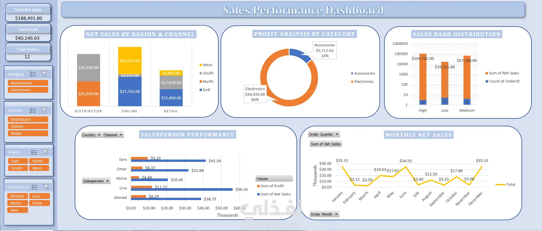 داشبورد تفاعلية توضح أداء المبيعات باستخدام Excel