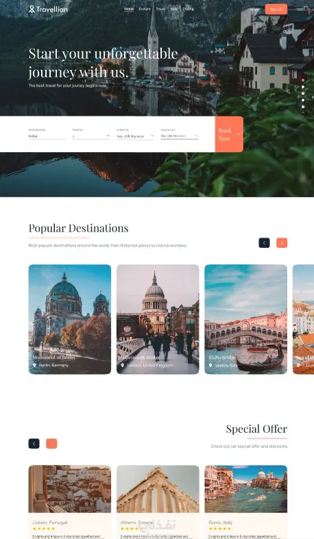 تصميم صفحة ويب لعرض الاماكن السياحية وحجز الرحلات