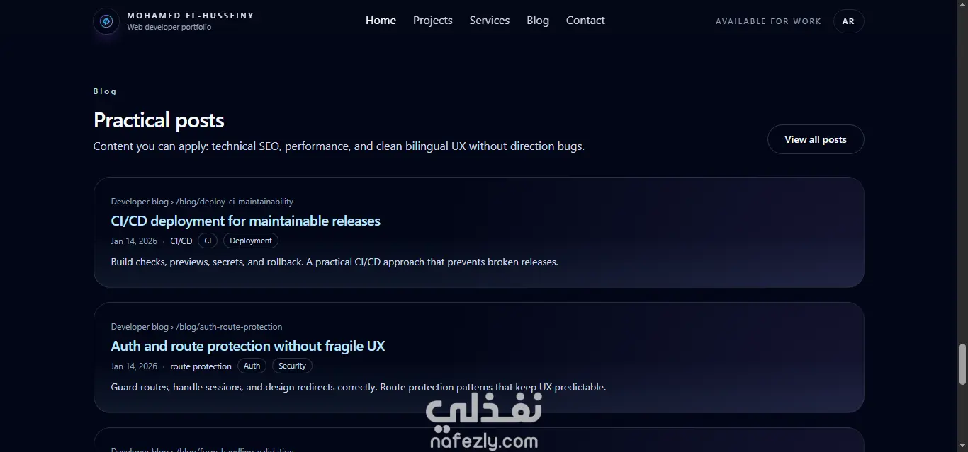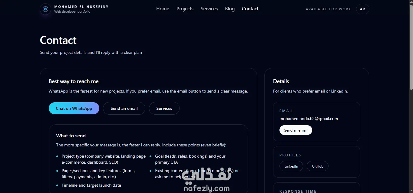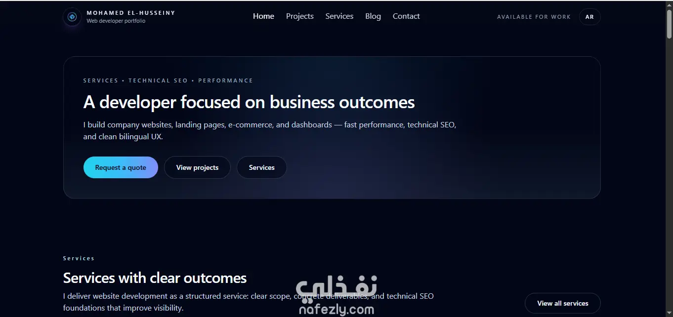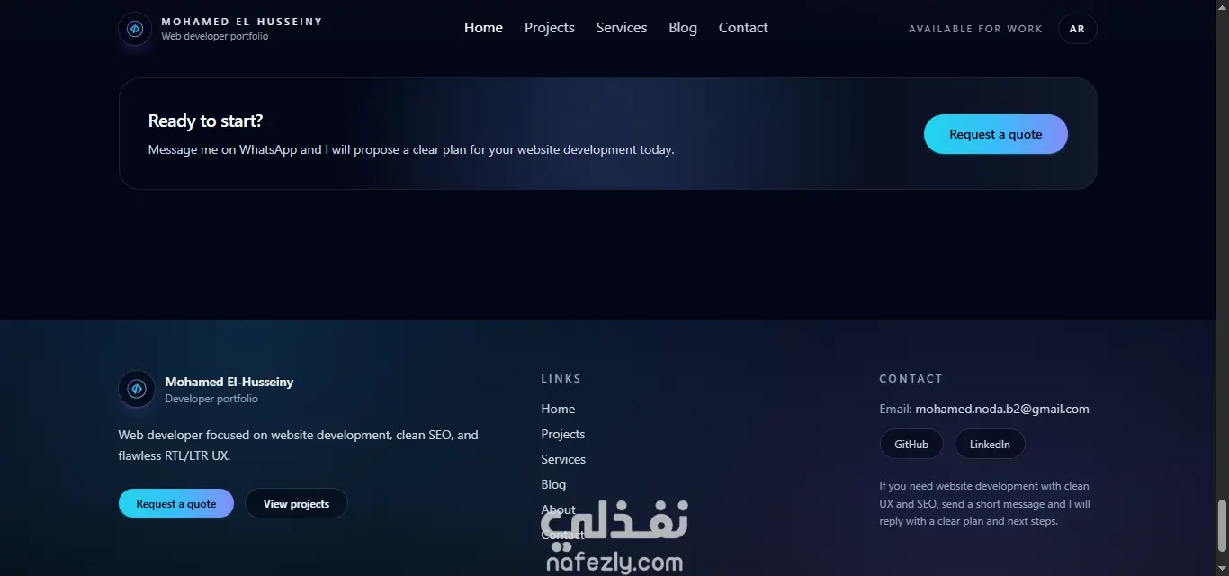 أنا مُتقن اللغة الإنجليزية والعربية، مما يضمن تواصلًا واضحًا وسلسًا. يمكننا مناقشة تفاصيل مشروعك باللغة التي تشعر بالراحة بها.