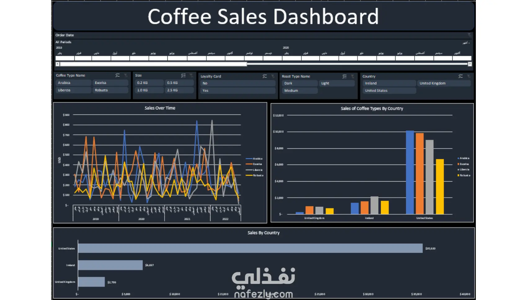 تحليل مبيعات متجر قهوة دولي وإنشاء لوحة تحكم تفاعلية (Excel Dashboard)