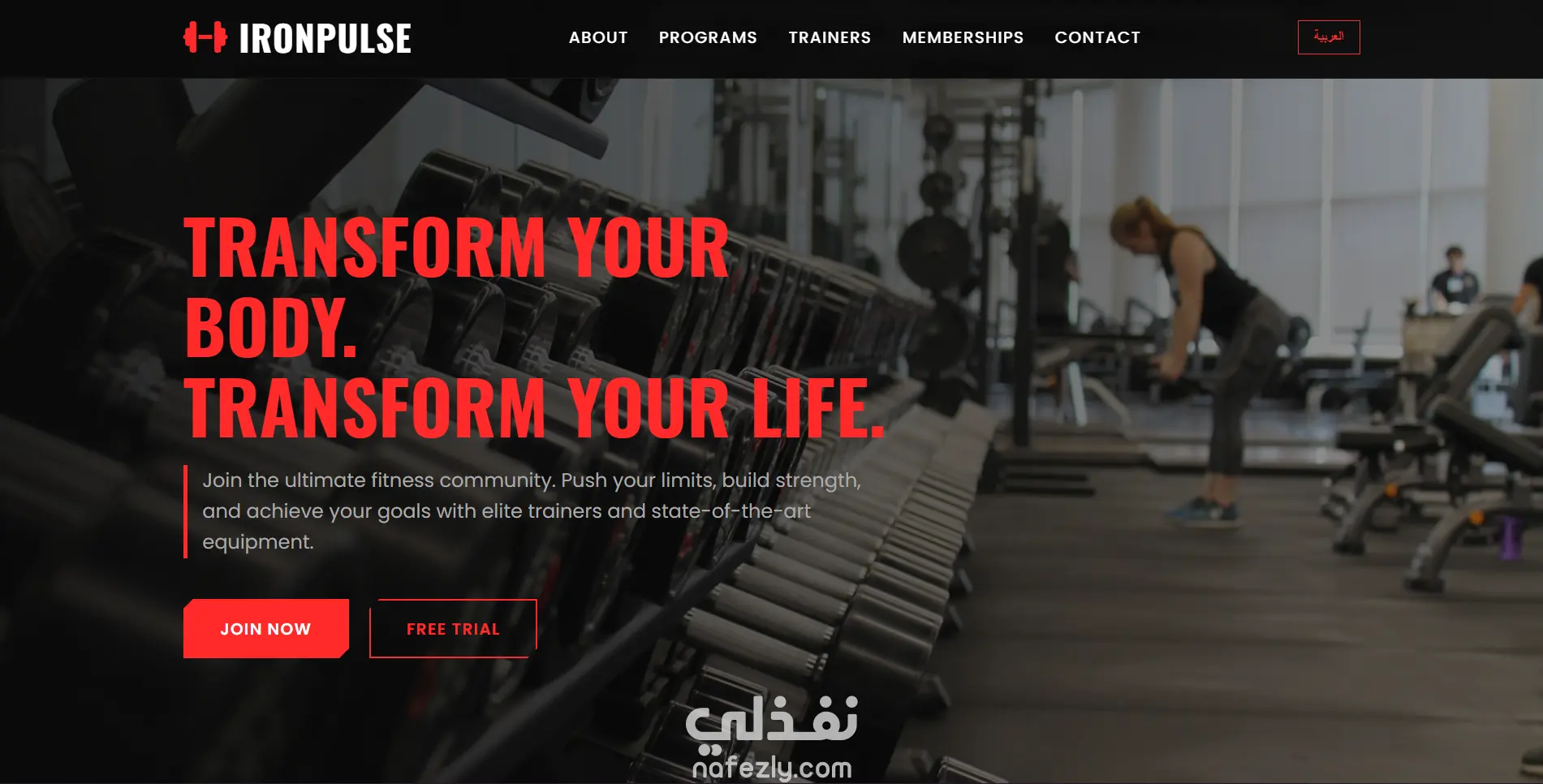 تصميم وتطوير صفحة هبوط رياضية مزدوجة اللغة لنادي لياقة بدنية