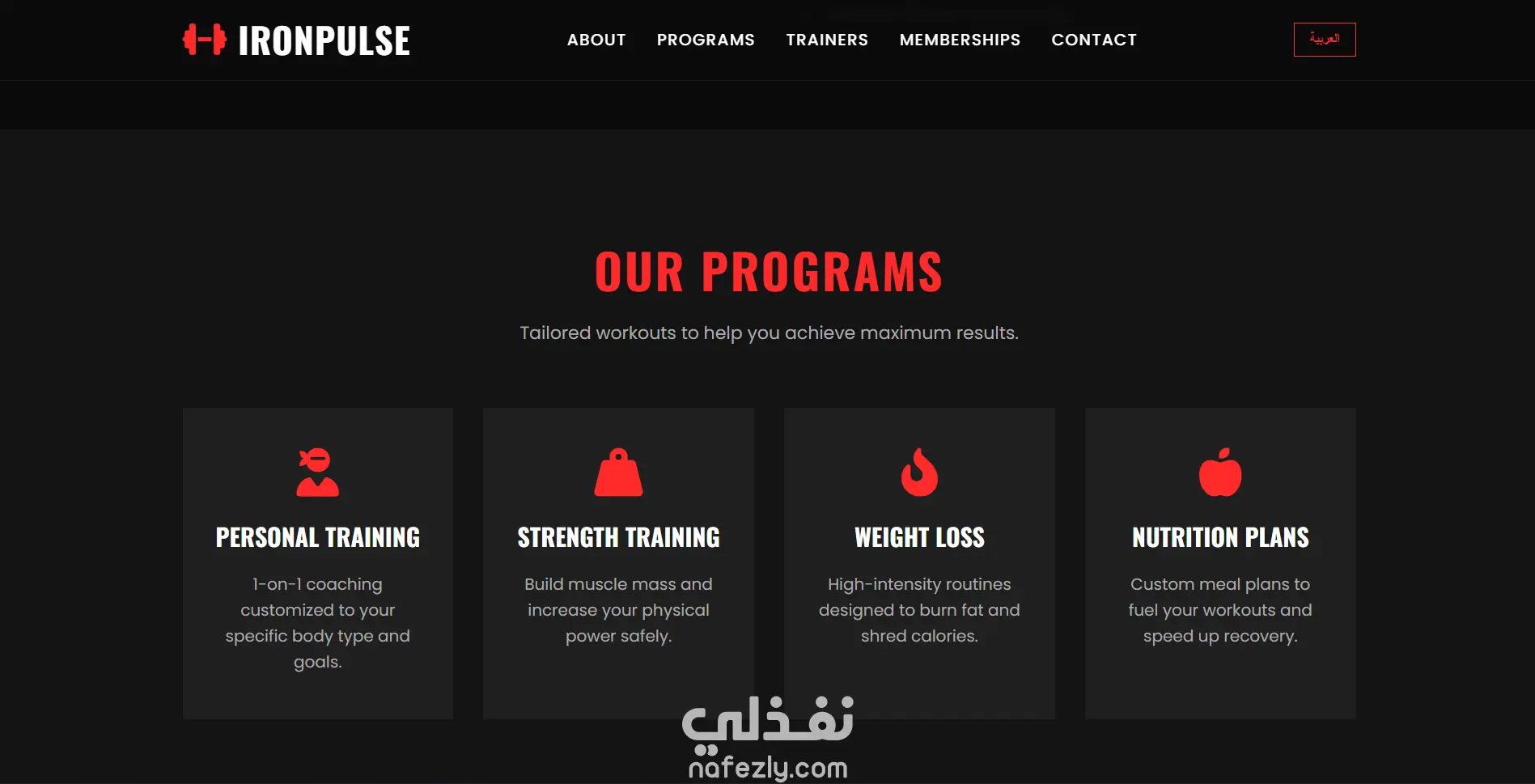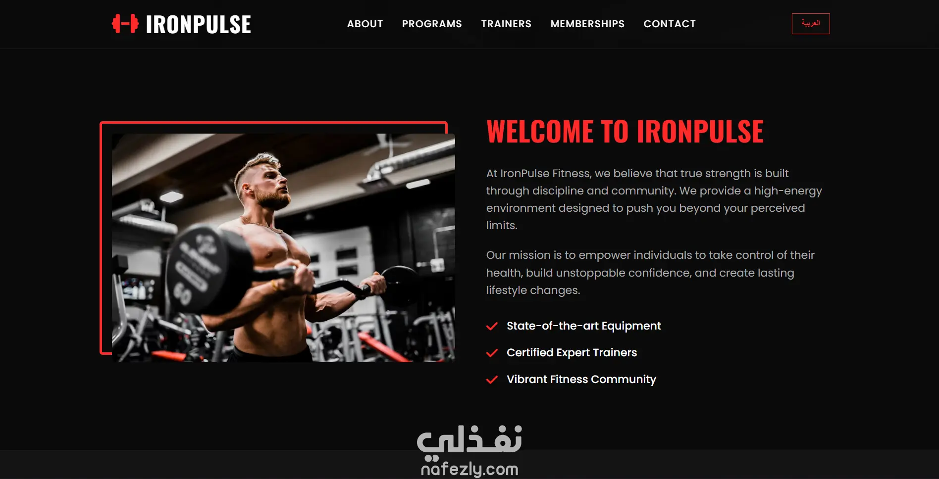 تم تصميم وتطوير صفحة هبوط عصرية وحماسية لعلامة تجارية رياضية "IronPulse Fitness". كان الهدف الأساسي من المشروع هو إنشاء واجهة ويب تعكس الطاقة، القوة، والانضباط، لجذب المشتركين الجدد، عرض باقات الاشتراك، وزيادة معدلات التحويل (Conversion Rates) من خلال تصميم يحفز الزائر على اتخاذ إجراء (Call-To-Action). أبرز مميزات المشروع: دعم ثنائي اللغة (Bilingual): نظام برمجي سلس للتبديل بين اللغتين (العربية والإنجليزية) بضغطة زر، وبدون الحاجة لإعادة تحميل الصفحة لضمان أفضل تجربة للمستخدم. توافق تام مع الاتجاهات (RTL & LTR): بنية كود مرنة تتكيف تلقائياً مع اتجاه القراءة؛ من اليمين لليسار في النسخة العربية، ومن اليسار لليمين في النسخة الإنجليزية. تصميم متجاوب بالكامل (Fully Responsive): عرض مثالي ومرن يتناسب مع جميع الأجهزة (شاشات الكمبيوتر، الأجهزة اللوحية، والهواتف الذكية). طابع بصري رياضي (High-Energy UI): الاعتماد على "النسق الداكن" (Dark Theme) مع لمسات من اللون الأحمر القوي (Neon Accents) ليعكس أجواء الصالات الرياضية الاحترافية. هيكلة تسويقية ذكية: تم توزيع العناصر (مثل أزرار الاشتراك، مميزات الباقات، وآراء العملاء) بناءً على أحدث مبادئ واجهة وتجربة المستخدم (UI/UX) لزيادة المبيعات والاشتراكات. كود نظيف ومُحسّن (Clean & Optimized Code): تم بناء المشروع بملف واحد يدمج الهيكلة والتنسيق لضمان سرعة تحميل فائقة وتصفح خالٍ من التعقيد. الأقسام الرئيسية للصفحة: القسم الرئيسي (Hero Section): رسالة تحفيزية قوية مع أزرار للاشتراك أو طلب تجربة مجانية. من نحن (About Us): لعرض رؤية النادي ومميزاته. البرامج والخدمات (Programs): عرض لخدمات التدريب الشخصي، القوة، وخسارة الوزن بتصميم شبكي جذاب. المدربون (Trainers): قسم مخصص لاستعراض نخبة المدربين وبناء الموثوقية. باقات الاشتراك (Memberships): جدول أسعار احترافي يبرز الباقة "الأكثر طلباً" (Most Popular). معرض الصور وآراء العملاء (Gallery & Testimonials): لتعزيز الثقة وعرض قصص النجاح وبيئة التدريب. تواصل معنا (Contact Us): نموذج اتصال متكامل مع تفاصيل الموقع الجغرافي. التقنيات المستخدمة: HTML5 (هيكلة دلالية) CSS3 (استخدام Flexbox و CSS Grid و Variables) Vanilla JavaScript (لبرمجة تبديل اللغات بمرونة) مكتبات الخطوط والأيقونات (Google Fonts: Cairo & Oswald & Poppins | FontAwesome)
