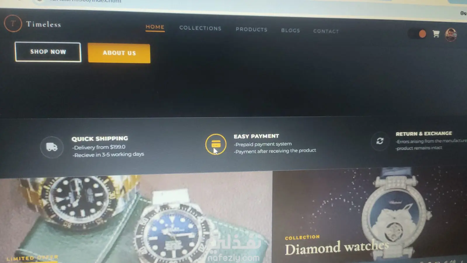 قمت ببناء وتطوير الواجهات الأمامية لمتجر "Timeless" للساعات الفاخرة، مع التركيز على خلق تجربة مستخدم تعكس الفخامة والأناقة، مع ضمان أداء برمجي عالٍ وسلس. المميزات التقنية التي قمت بتنفيذها: 1- نظام الوضع الليلي (Dark/Light Mode): تطبيق ميزة التبديل بين الأوضاع مع حفظ تفضيلات المستخدم باستخدام LocalStorage. 2- سلة تسوق تفاعلية: بناء منطق السلة بالكامل باستخدام JavaScript، مع إمكانية إضافة وحذف المنتجات وحساب الإجمالي لحظياً. 3- نظام تسجيل الدخول (UI Auth): تصميم وبرمجة نوافذ تسجيل الدخول والاشتراك (Modals) بشكل تفاعلي. 4- تجربة مستخدم (UX) متجاوبة: المتجر متوافق تماماً مع جميع الشاشات (Responsive) باستخدام CSS Flexbox و Grid. 5- Clean Code: كود منظم ومقسم لسهولة التعديل عليه، مع استخدام متغيرات CSS للتحكم في الألوان والهوية البصرية. باستخدام التقنيات: HTML5 | CSS3 (Variables & Animations) | JavaScript (Vanilla)