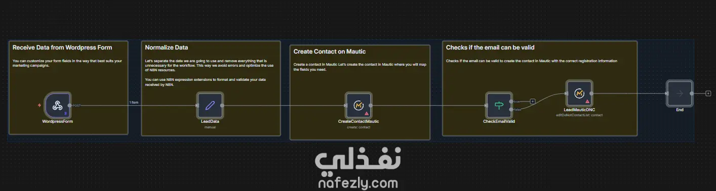 بناء وتطوير سير عمل مؤتمت (n8n Workflow) لربط WordPress مع Mautic وتحسين جودة البيانات