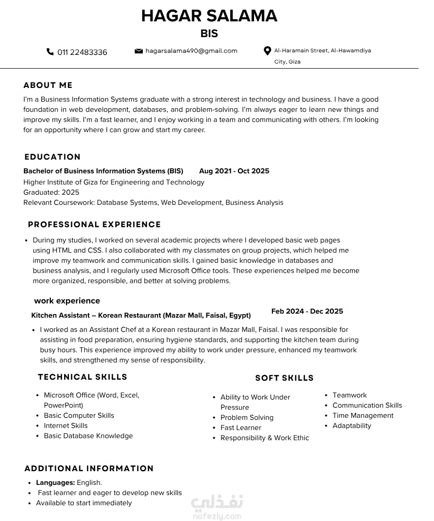 تصميم CV مخصص لعرض البيانات والمهارات والخبرات بشكل جذاب واحترافي باسلوب متوافق مع انظمة ATS