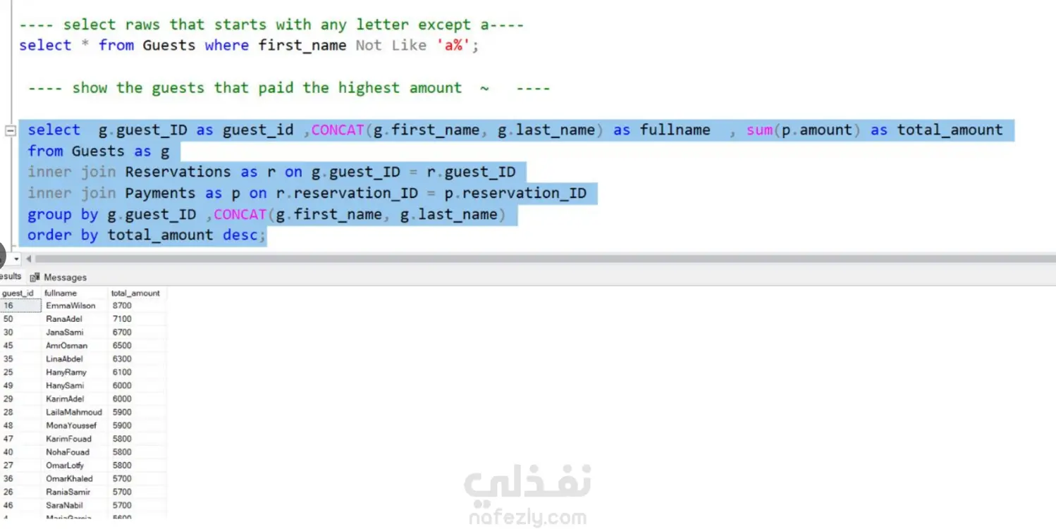 تعلمت استخدام SQL في تحليل البيانات من خلال كتابة استعلامات لاستخراج وتنظيف وتنظيم البيانات من قواعد البيانات. كما اكتسبت مهارات في تحليل البيانات واكتشاف الأنماط والاتجاهات لدعم اتخاذ القرار. تمكنت من استخدام العمليات الأساسية مثل التصفية، الربط بين الجداول (Joins)، والتجميع (Grouping) لتحويل البيانات الخام إلى معلومات مفيدة.