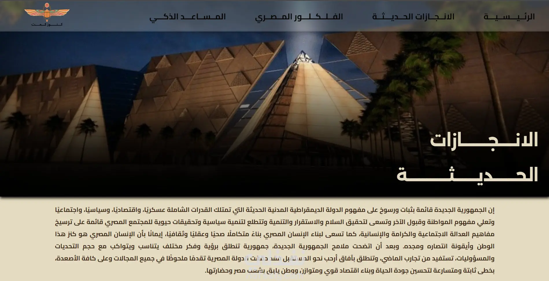 مشروع "كنوز كمت" هو منصة رقمية متكاملة (موسوعة إلكترونية) تهدف إلى سد الفجوة المعرفية لدى المواطنين المصريين حول المعالم السياحية والأثرية في كافة محافظات الجمهورية. تم تطوير المشروع بناءً على منهجية دورة حياة تطوير الأنظمة (SDLC) لضمان تقديم حل تقني يلبي احتياجات المستخدمين ويحقق أهدافاً استراتيجية.