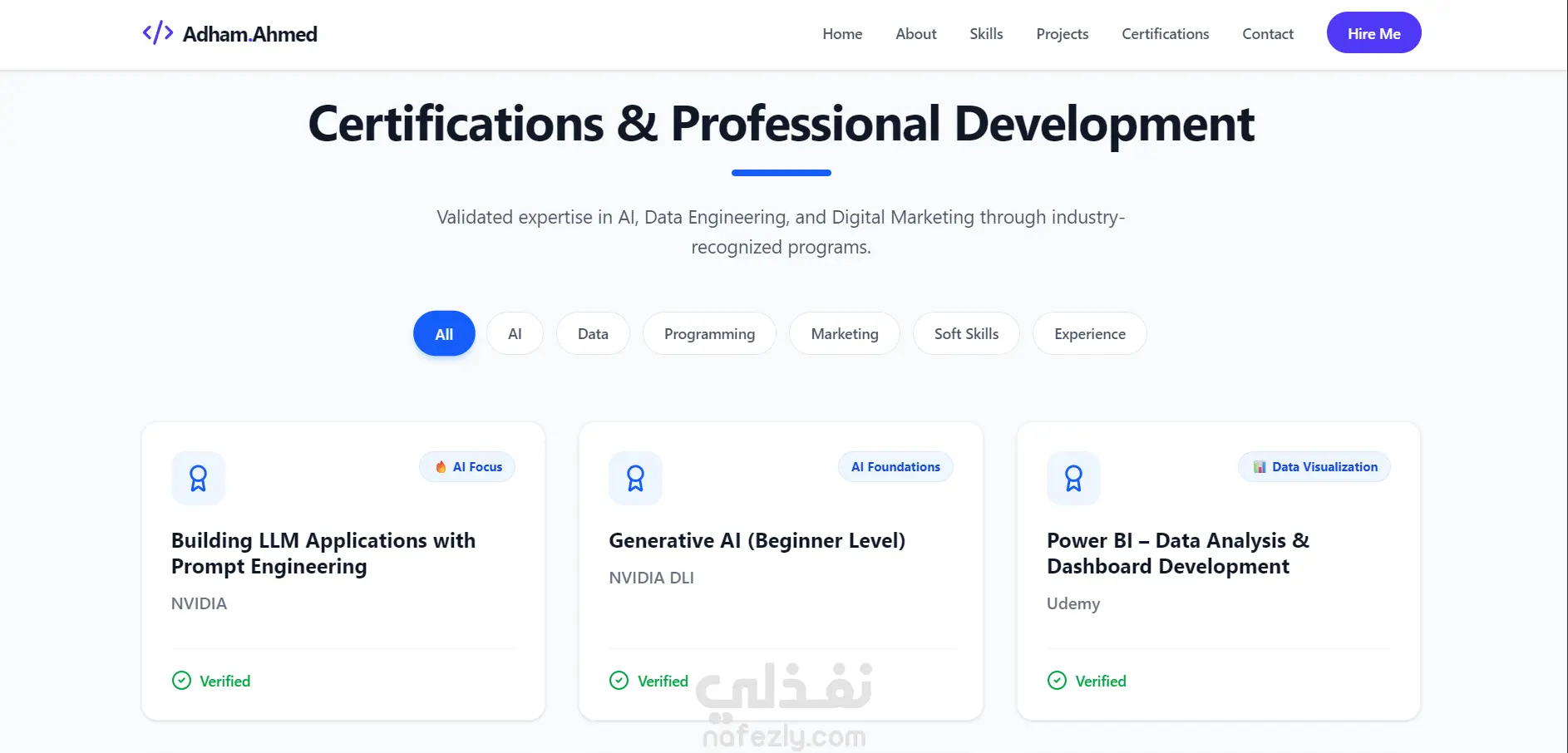 - قسم مخصص للشهادات والدورات التدريبية.