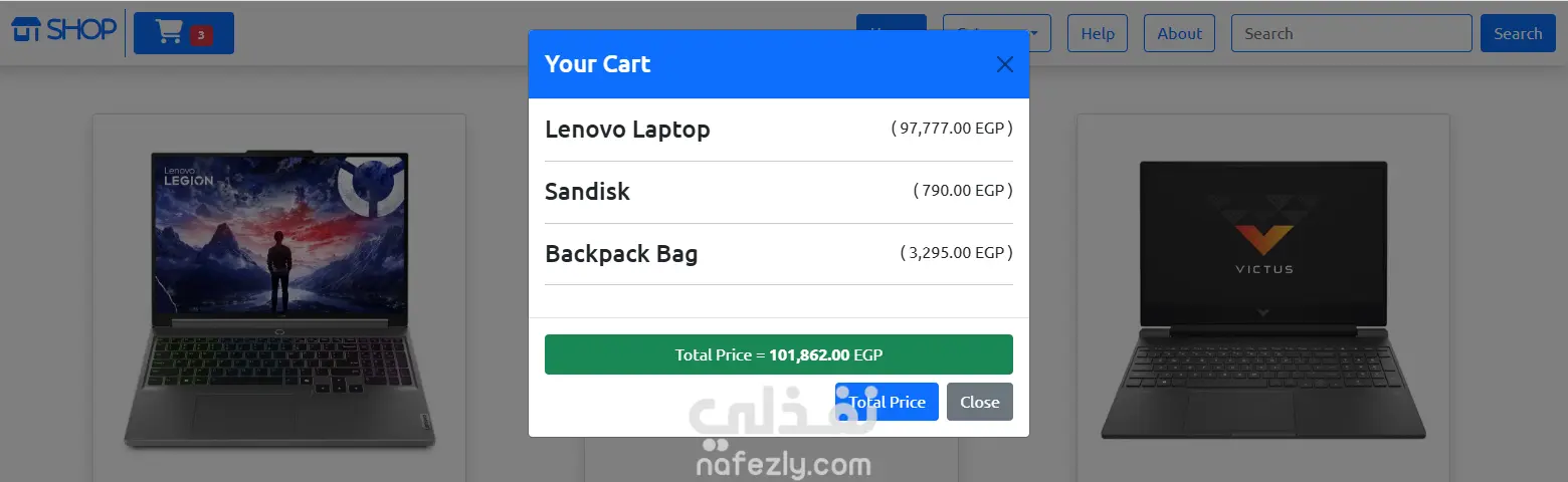 قمت بتطوير متجر إلكتروني بسيط لعرض وبيع اللابتوبات والإكسسوارات باستخدام JavaScript، مع التركيز على عرض المنتجات بشكل ديناميكي.