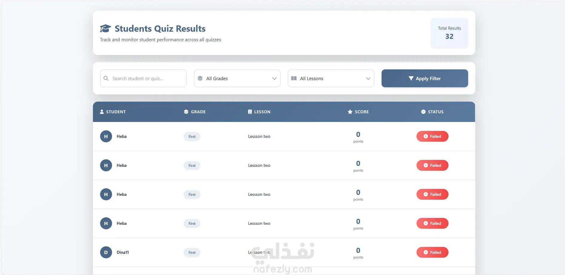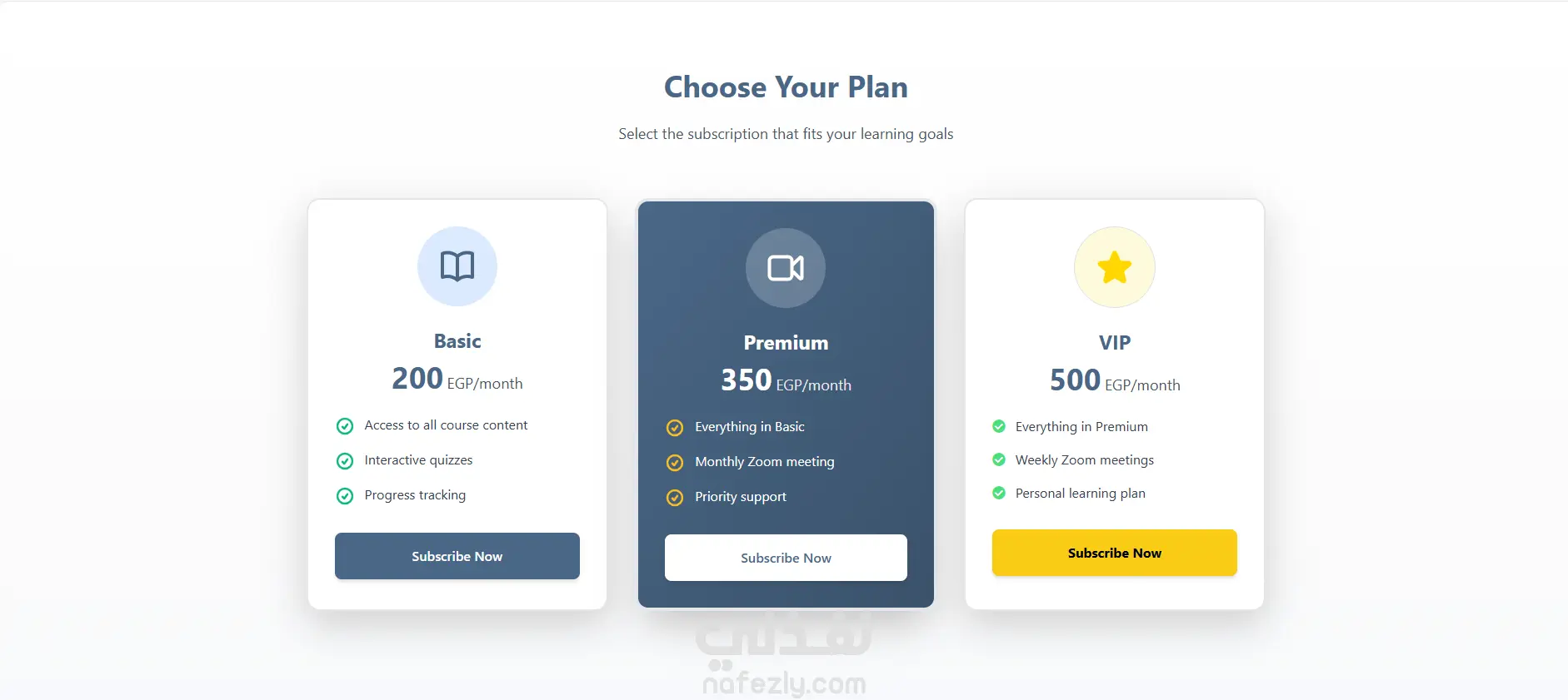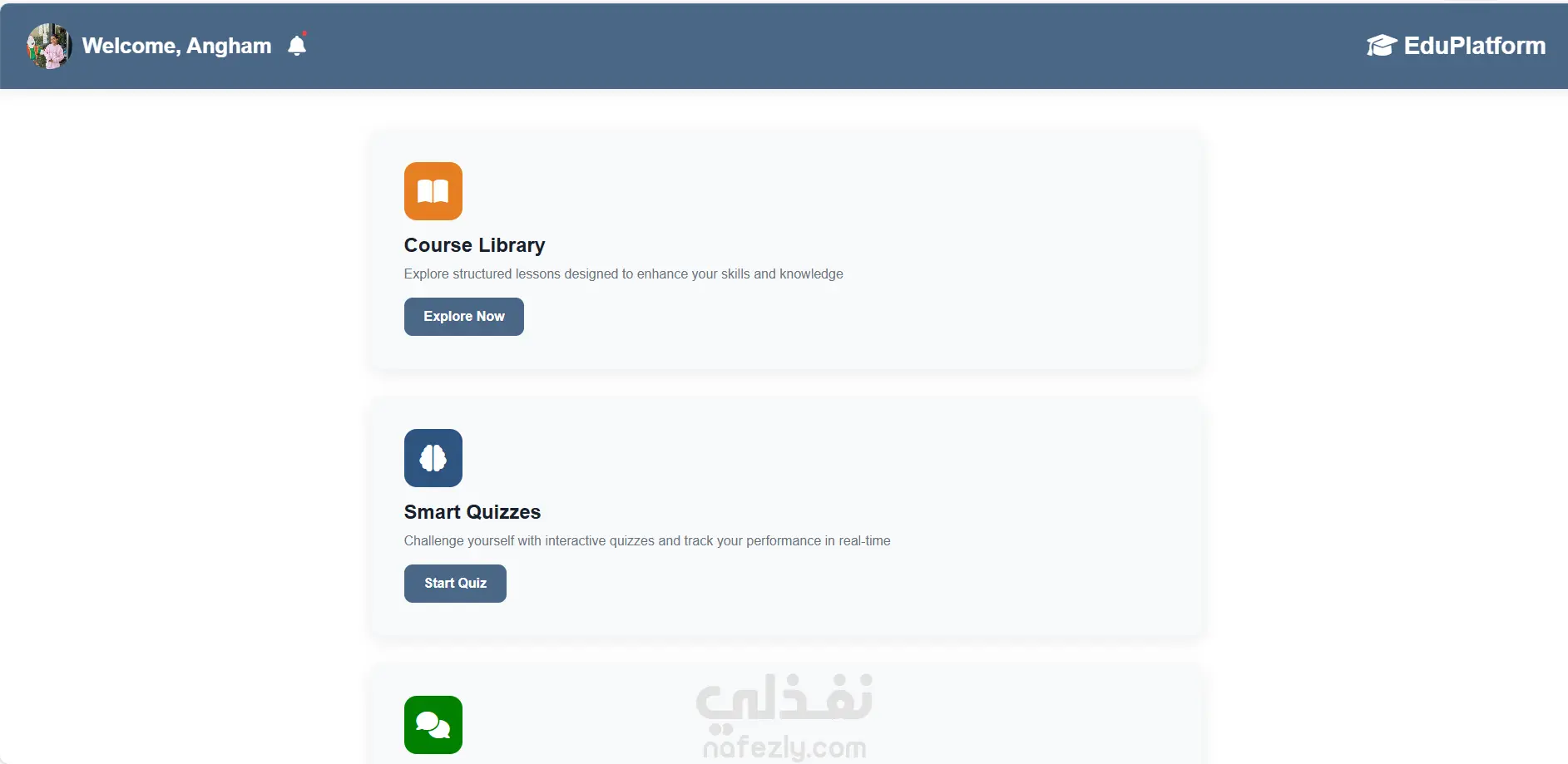 قدم لك تصميم وتطوير منصة تعليم إلكتروني متكاملة باستخدام أحدث التقنيات. المنصة مناسبة لـ: المدرسين الأكاديميات المشاريع التعليمية مميزات العمل نظام تسجيل وتسجيل دخول المستخدمين مكن لكل مستخدم إنشاء حساب خاص وتسجيل الدخول بسهولة وأمان. عرض الكورسات والدروس تصفح الكورسات والدروس بشكل منظم وسهل الوصول. رفع ملفات (PDF / فيديو) إمكانية رفع وعرض ملفات تعليمية مثل الفيديوهات وملفات PDF. نظام امتحانات وتقييم إنشاء اختبارات بسيطة وتصحيحها مع عرض النتائج للطلاب. لوحة تحكم للطالب لمتابعة التقدم يستطيع الطالب متابعة مستواه ومعرفة تقدمه فى الكورسات. لوحة تحكم للمدرس لإدارة المحتوى مكن للمدرس إضافة وتعديل الكورسات والدروس بكل سهولة.