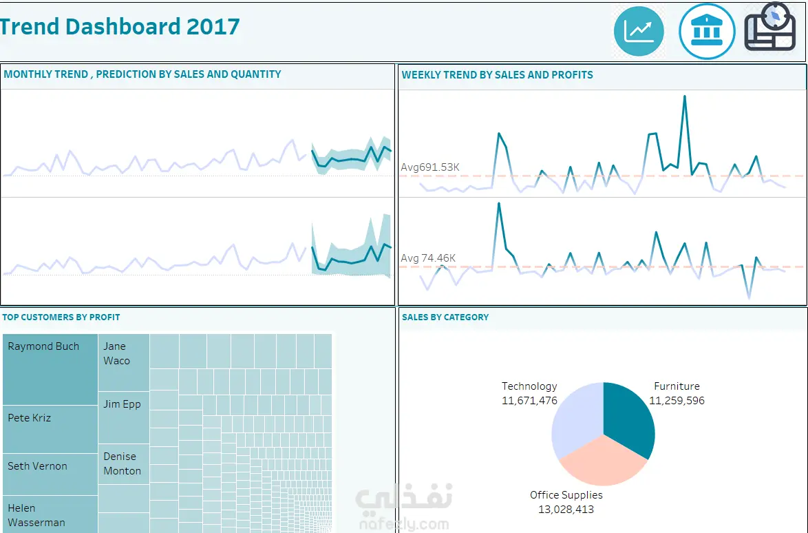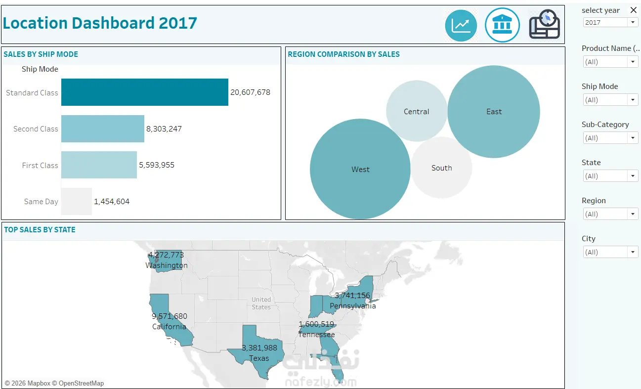 تصميم لوحة معلومات تفاعلية لتحليل بيانات المبيعات بهدف تحويل البيانات إلى رؤى تحليلية واضحة تساعد في دعم اتخاذ القرار. يعرض المشروع تحليلًا شاملًا لأداء المبيعات من عدة جوانب مثل الاتجاهات الزمنية، الأداء الجغرافي، العملاء، والمنتجات، مما يساعد على فهم سلوك المبيعات وتحديد العوامل المؤثرة في الأداء. تتكون لوحة المعلومات من عدة أقسام رئيسية تعرض مؤشرات الأداء الرئيسية وتحليلات متقدمة بطريقة مرئية سهلة الفهم. مكونات المشروع 1. لوحة تحليل الأداء العام للمبيعات تعرض مؤشرات الأداء الرئيسية مثل: إجمالي المبيعات إجمالي الأرباح إجمالي الكميات المباعة كما تتضمن مقارنة الأداء الحالي بالفترة السابقة مع إظهار نسبة التغير، بالإضافة إلى تحليل الاتجاه الشهري للمبيعات والأرباح والكميات على مدار العام. 2. لوحة تحليل الاتجاهات (Trend Analysis) توضح اتجاهات المبيعات والأرباح على المستوى الشهري والأسبوعي، مع استخدام خطوط الاتجاه والتوقعات لفهم سلوك المبيعات المستقبلي. كما تعرض هذه اللوحة أفضل العملاء من حيث الأرباح، بالإضافة إلى توزيع المبيعات حسب الفئات المختلفة للمنتجات. 3. لوحة تحليل المواقع الجغرافية تقدم تحليلاً لأداء المبيعات حسب المناطق المختلفة مثل: المناطق الجغرافيةو الولايات كما تحتوي على خريطة تفاعلية توضح أعلى الولايات تحقيقًا للمبيعات، بالإضافة إلى مقارنة أداء المناطق المختلفة باستخدام مخطط الفقاعات. 4. تحليل المنتجات وطرق الشحن تشمل اللوحة تحليلاً للمبيعات حسب:فئات المنتجات والفئات الفرعية وطرق الشحن المختلفة كما توضح مقارنة أداء المنتجات من حيث المبيعات والأرباح، مما يساعد على تحديد المنتجات الأكثر ربحية. هدف المشروع يساعد هذا النوع من لوحات المعلومات الشركات على: متابعة الأداء التجاري بشكل سريع وواضح تحليل اتجاهات المبيعات تحديد المنتجات والعملاء الأكثر ربحية دعم اتخاذ القرارات بناءً على البيانات