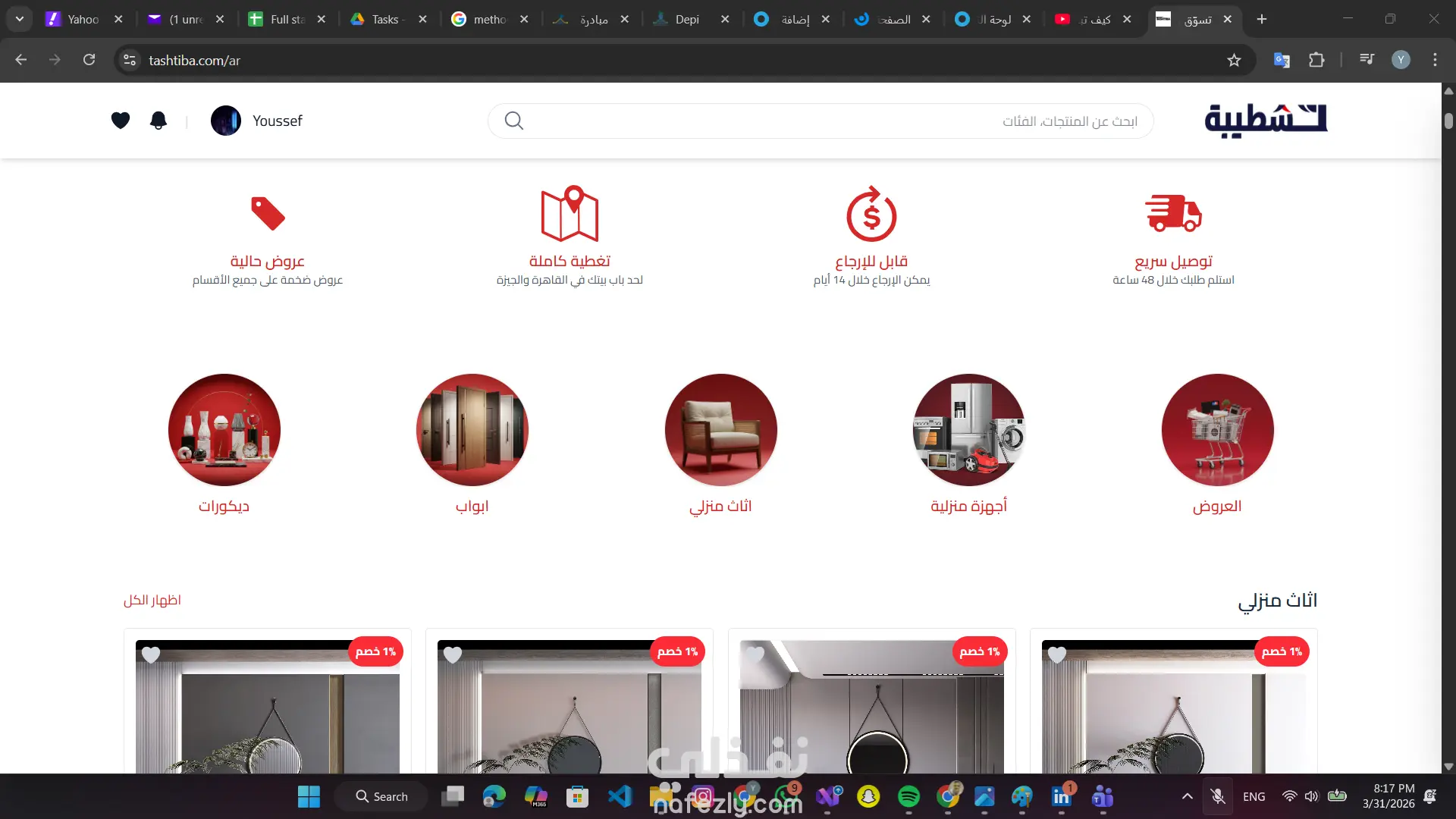 تطوير واجهة منصة تجارة إلكترونية متعددة التجار (Multi-Vendor E-commerce) باستخدام React.