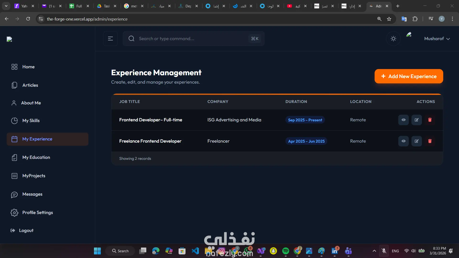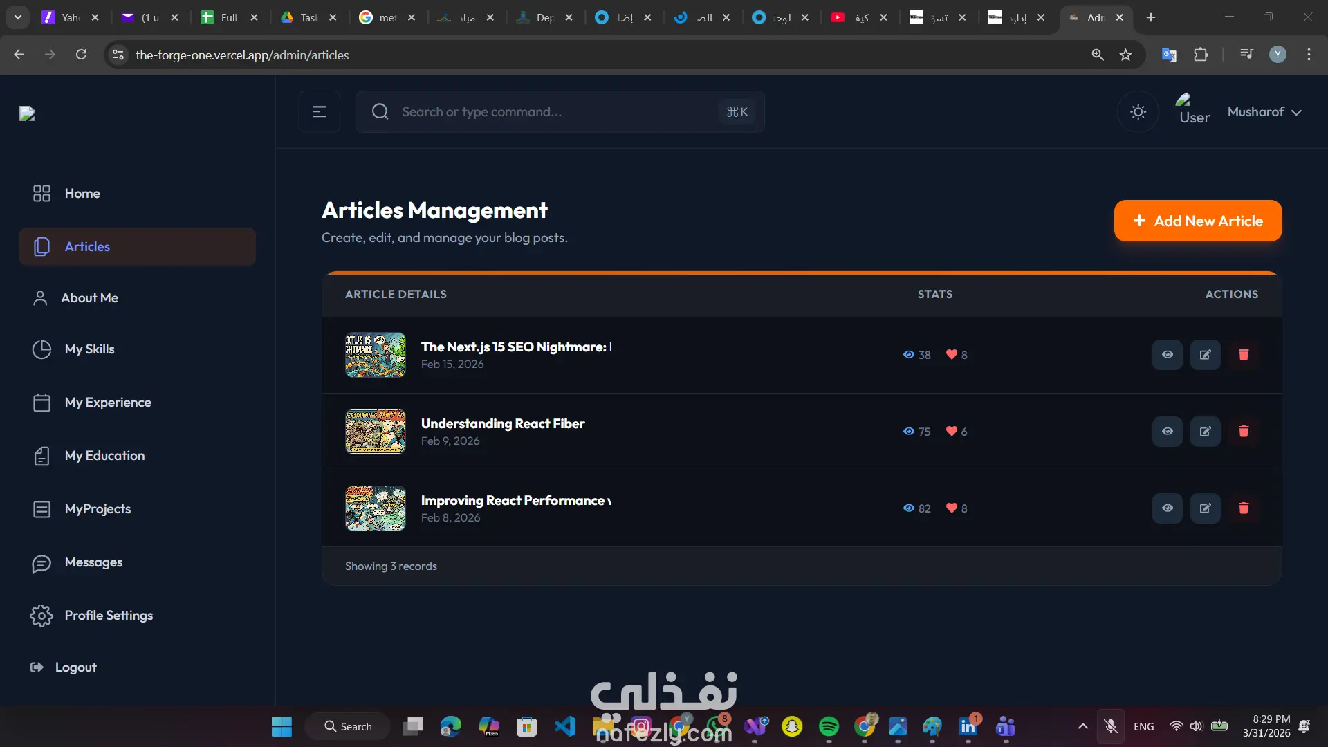 بناء معرض أعمال ذكي ومدونة احترافية مع لوحة تحكم متكاملة لإدارة المحتوى (CMS).