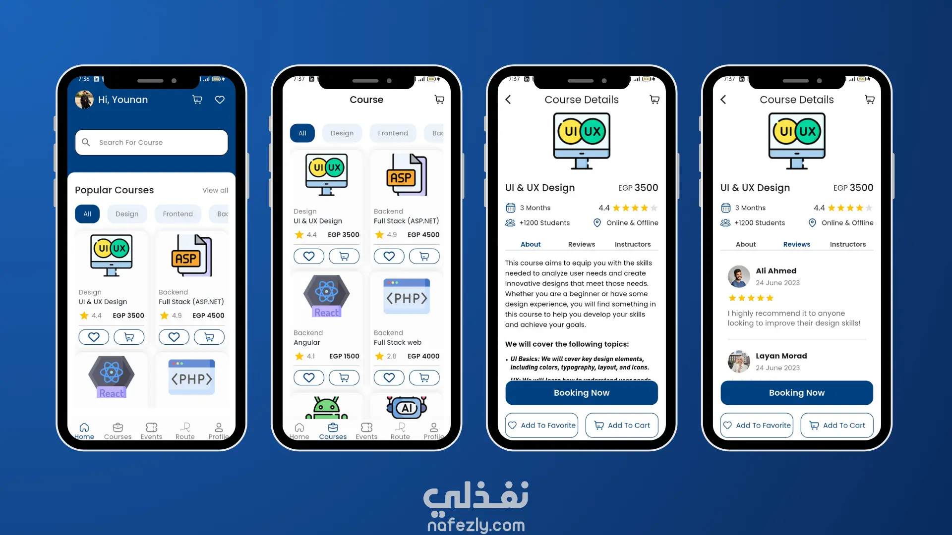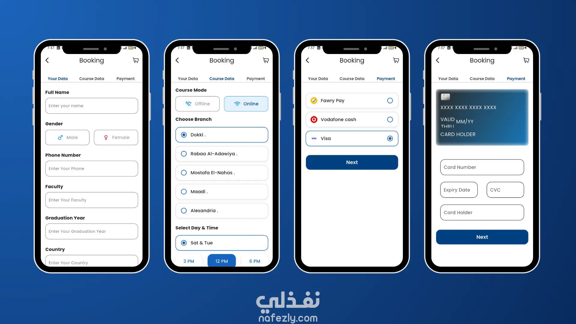 طبيق موبايل تعليمي خاص بأكاديمية تدريبية، يتيح للمستخدمين تصفح الكورسات، عرض تفاصيلها، وحجزها بسهولة من خلال نظام حجز متكامل يشمل اختيار الفرع، تحديد المواعيد، وإتمام الدفع.