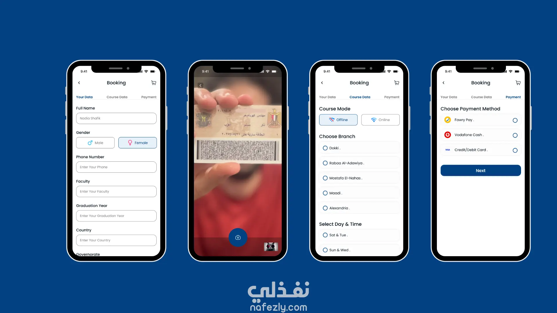 اختيار الفرع والمواعيد (Online / Offline)