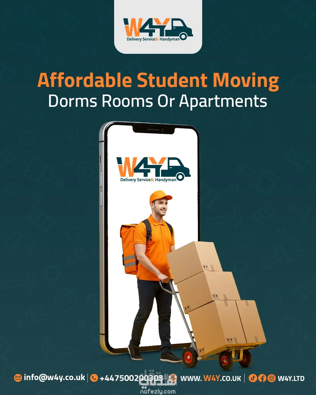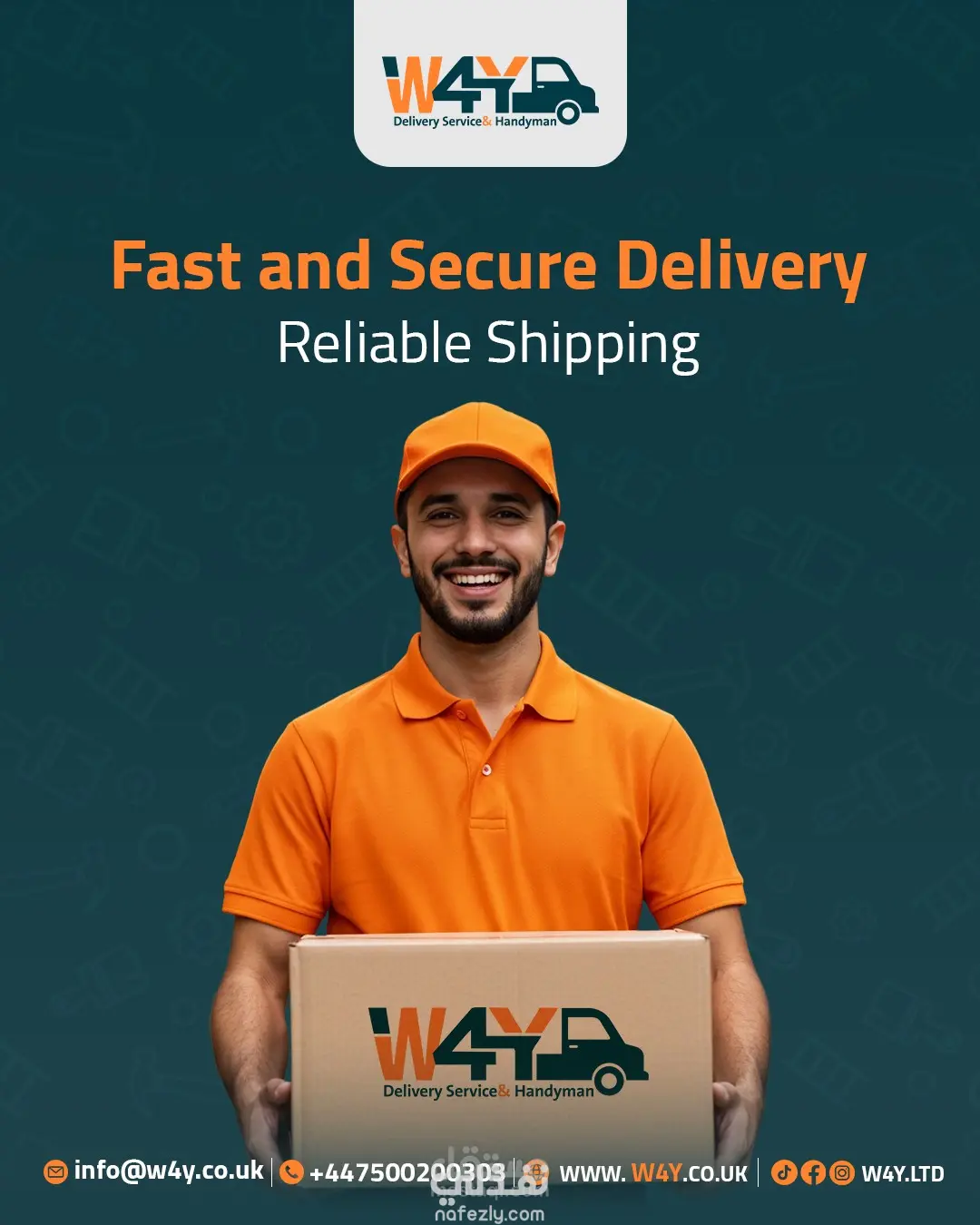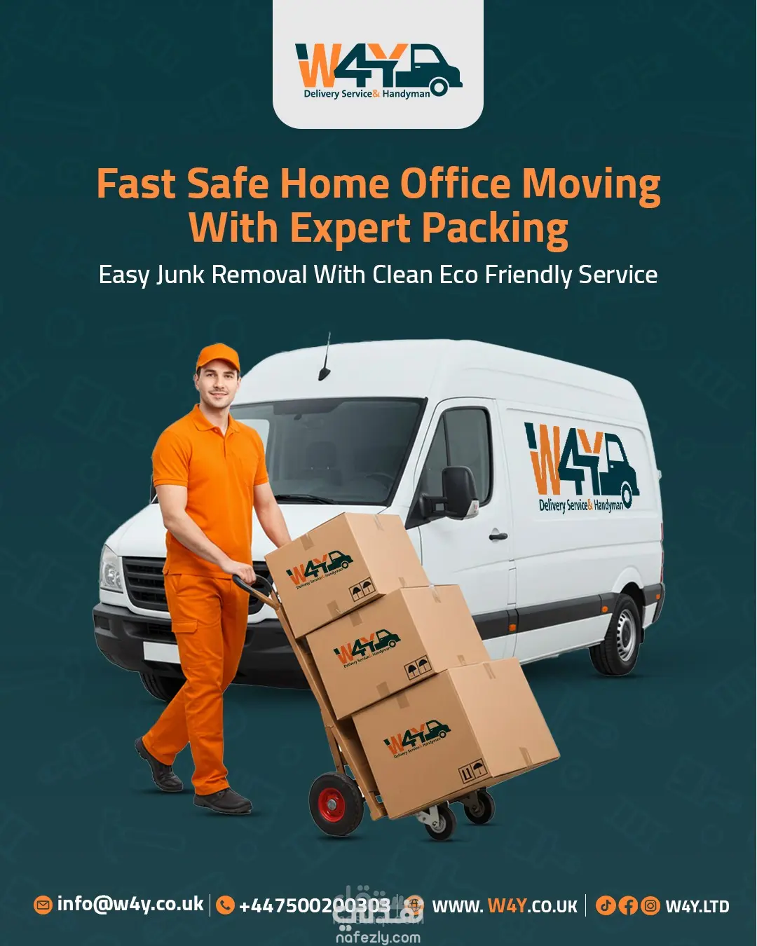 تصميم مجموعة بوستات إعلانية متكاملة لشركة W4Y للخدمات اللوجستية في بريطانيا، تهدف لتعزيز الهوية البصرية وجذب العملاء عبر منصات التواصل الاجتماعي. ما قمت بفعله: تصميم هوية موحدة: الالتزام بألوان العلامة التجارية (البرتقالي والأخضر) لضمان اتساق بصري احترافي. دمج بصري واقعي: دمج صور الشاحنات، الطرود، والعناصر البشرية بشكل متناسق (Photo Manipulation). تنوع المحتوى: تغطية 6 خدمات مختلفة (نقل أثاث، توصيل طلاب، شحن سريع، سحب سيارات، إلخ). تنسيق عصري: اعتماد أسلوب التصميم الأوروبي (بسيط، واضح، ومباشر) مع إبراز بيانات التواصل بوضوح.