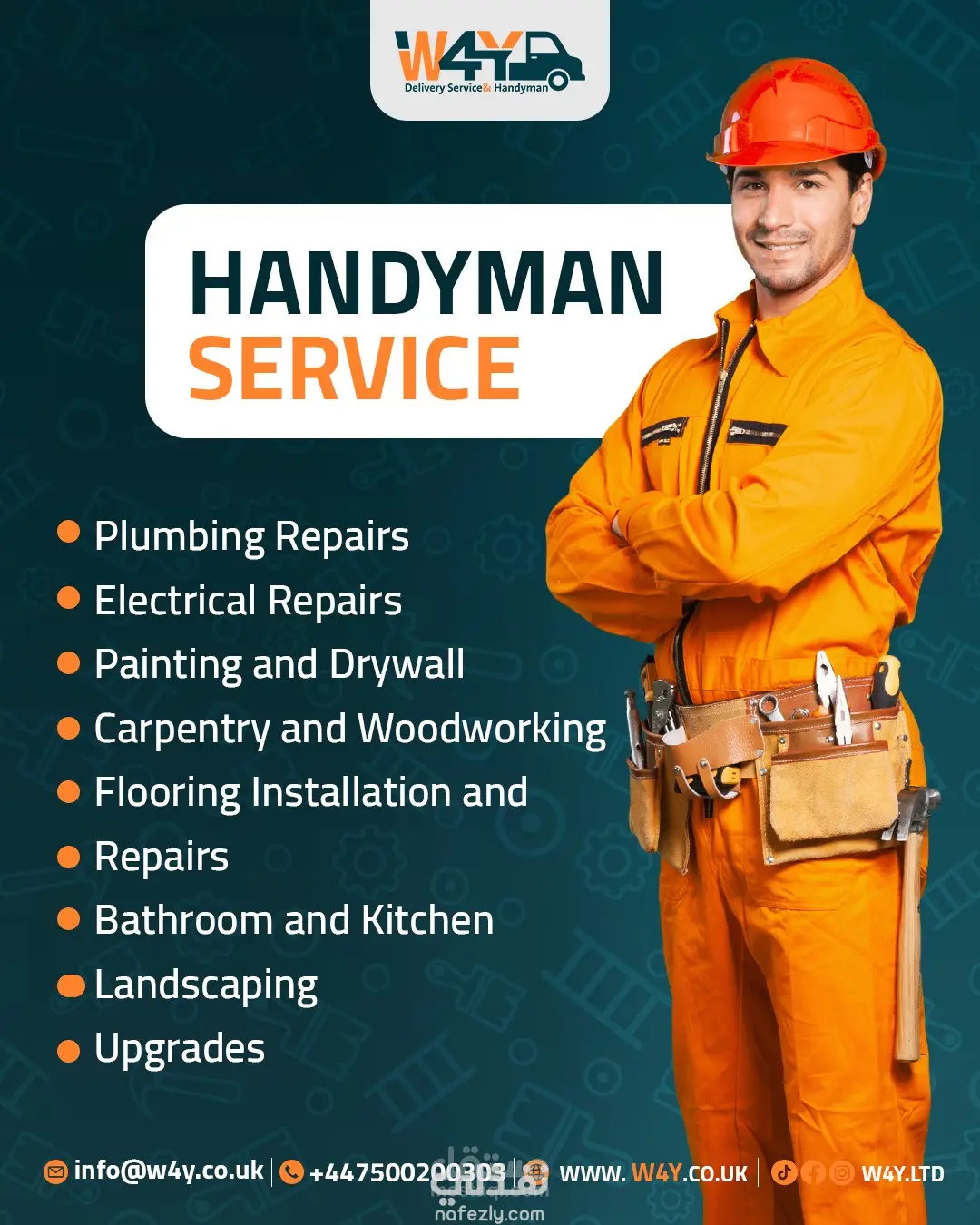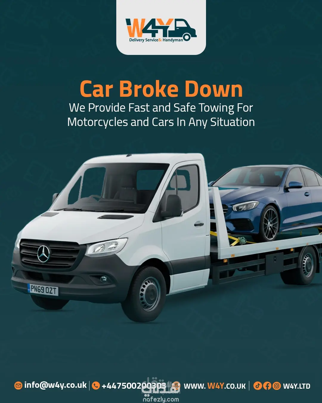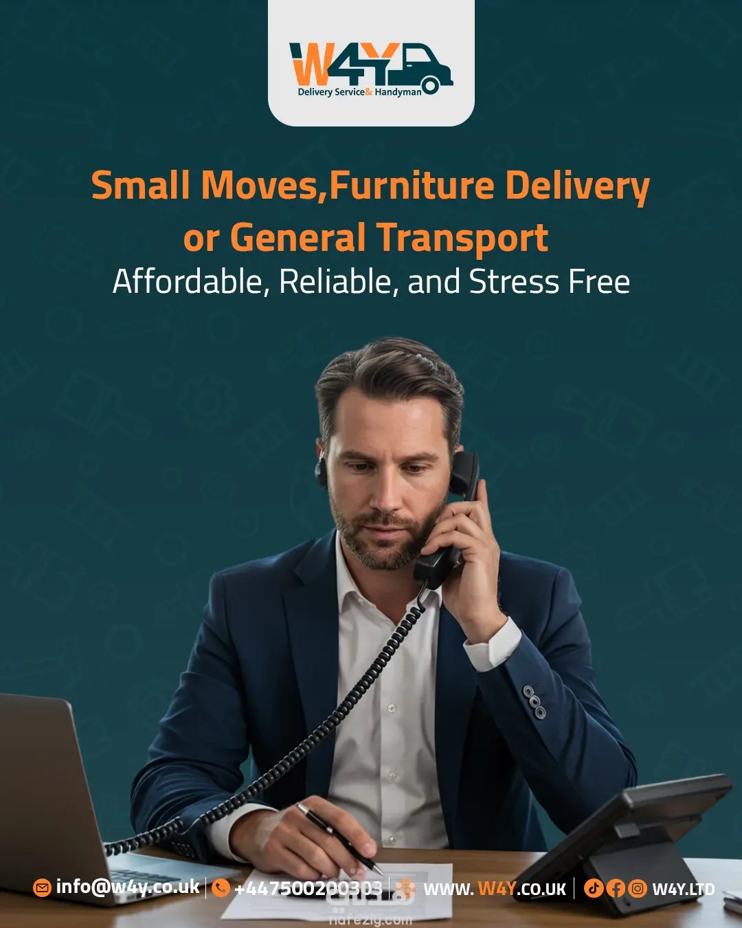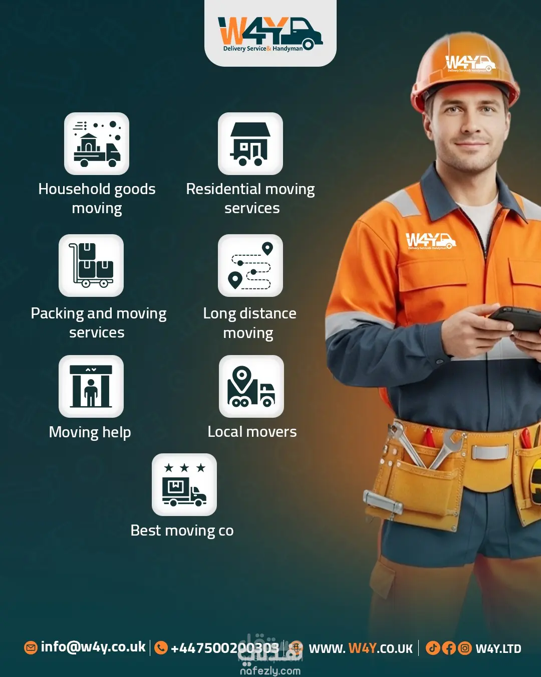 تصميم مجموعة بوستات إعلانية متكاملة لشركة W4Y للخدمات اللوجستية في بريطانيا، تهدف لتعزيز الهوية البصرية وجذب العملاء عبر منصات التواصل الاجتماعي. ما قمت بفعله: تصميم هوية موحدة: الالتزام بألوان العلامة التجارية (البرتقالي والأخضر) لضمان اتساق بصري احترافي. دمج بصري واقعي: دمج صور الشاحنات، الطرود، والعناصر البشرية بشكل متناسق (Photo Manipulation). تنوع المحتوى: تغطية 6 خدمات مختلفة (نقل أثاث، توصيل طلاب، شحن سريع، سحب سيارات، إلخ). تنسيق عصري: اعتماد أسلوب التصميم الأوروبي (بسيط، واضح، ومباشر) مع إبراز بيانات التواصل بوضوح.