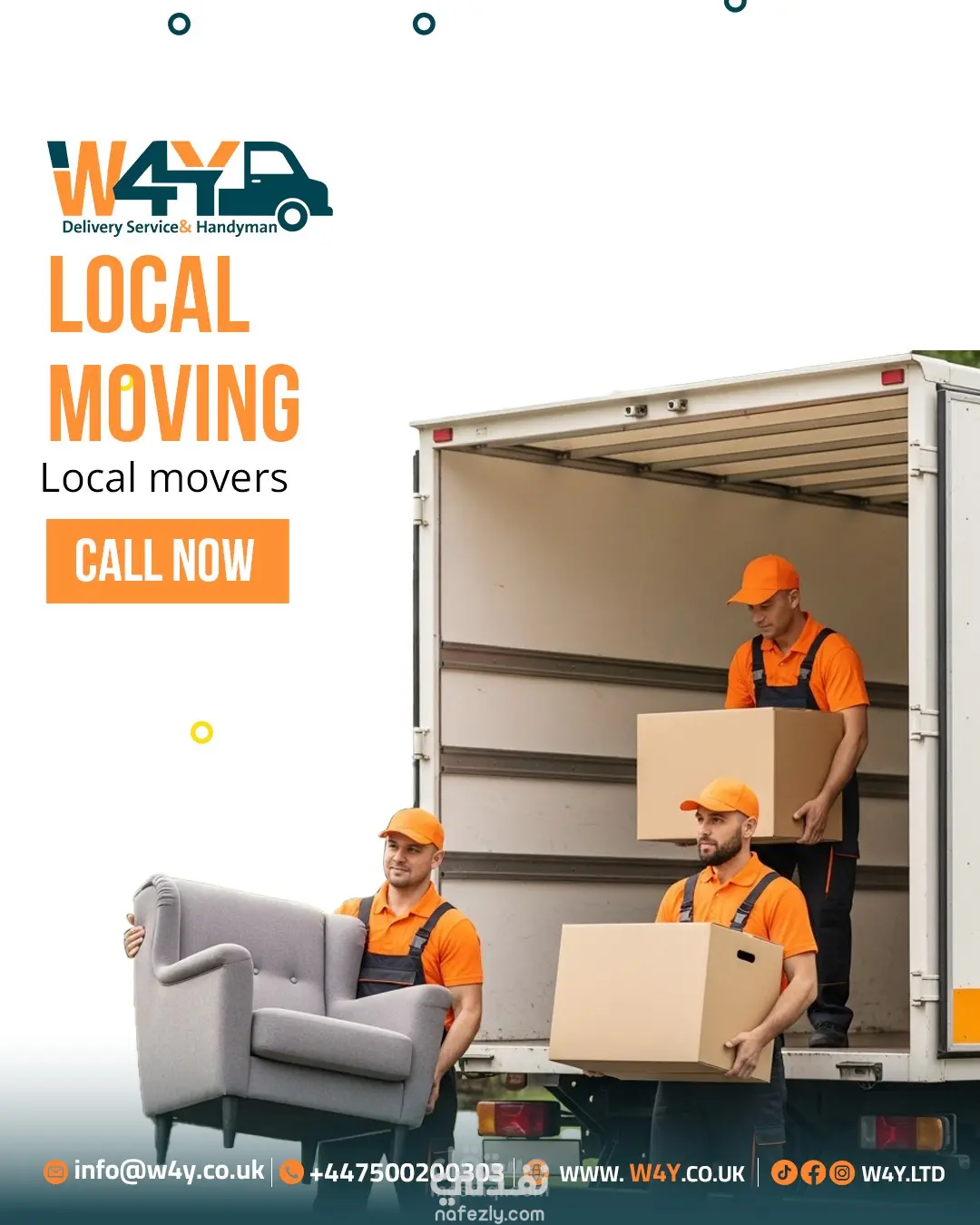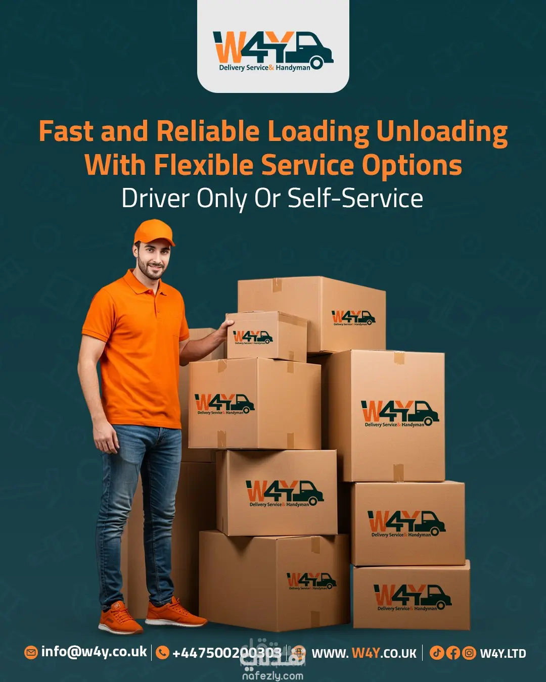 تصاميم سوشيال ميديا احترافية لشركة شحن وخدمات لوجستية في بريطانيا (W4Y).