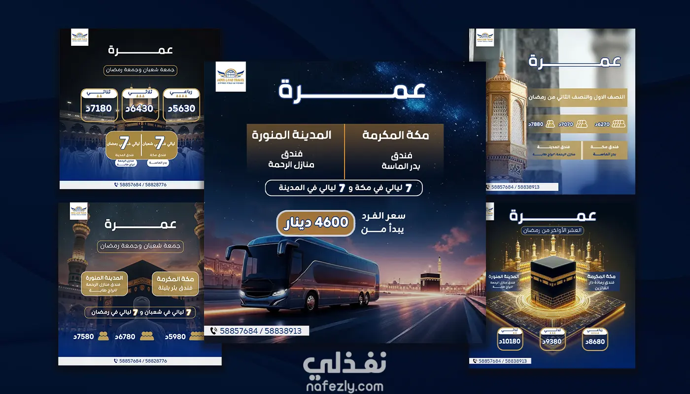 قمتُ بتصميم مجموعة تصاميم إعلانية خاصة بـ رحلات العمرة بأسلوب بصري راقٍ ومناسب للهوية الإسلامية والسياحية. التصاميم تعتمد على: • إبراز روحانية العمرة وأجوائها المقدسة • استخدام ألوان هادئة وفخمة تعكس الثقة والاحتراف • توزيع بصري متوازن بين الصور والنصوص • تصاميم مناسبة للنشر على وسائل التواصل الاجتماعي والإعلانات الرقمية تم تنفيذ التصاميم باحترافية لتساعد على جذب العملاء وزيادة التفاعل وتعزيز صورة العلامة التجارية