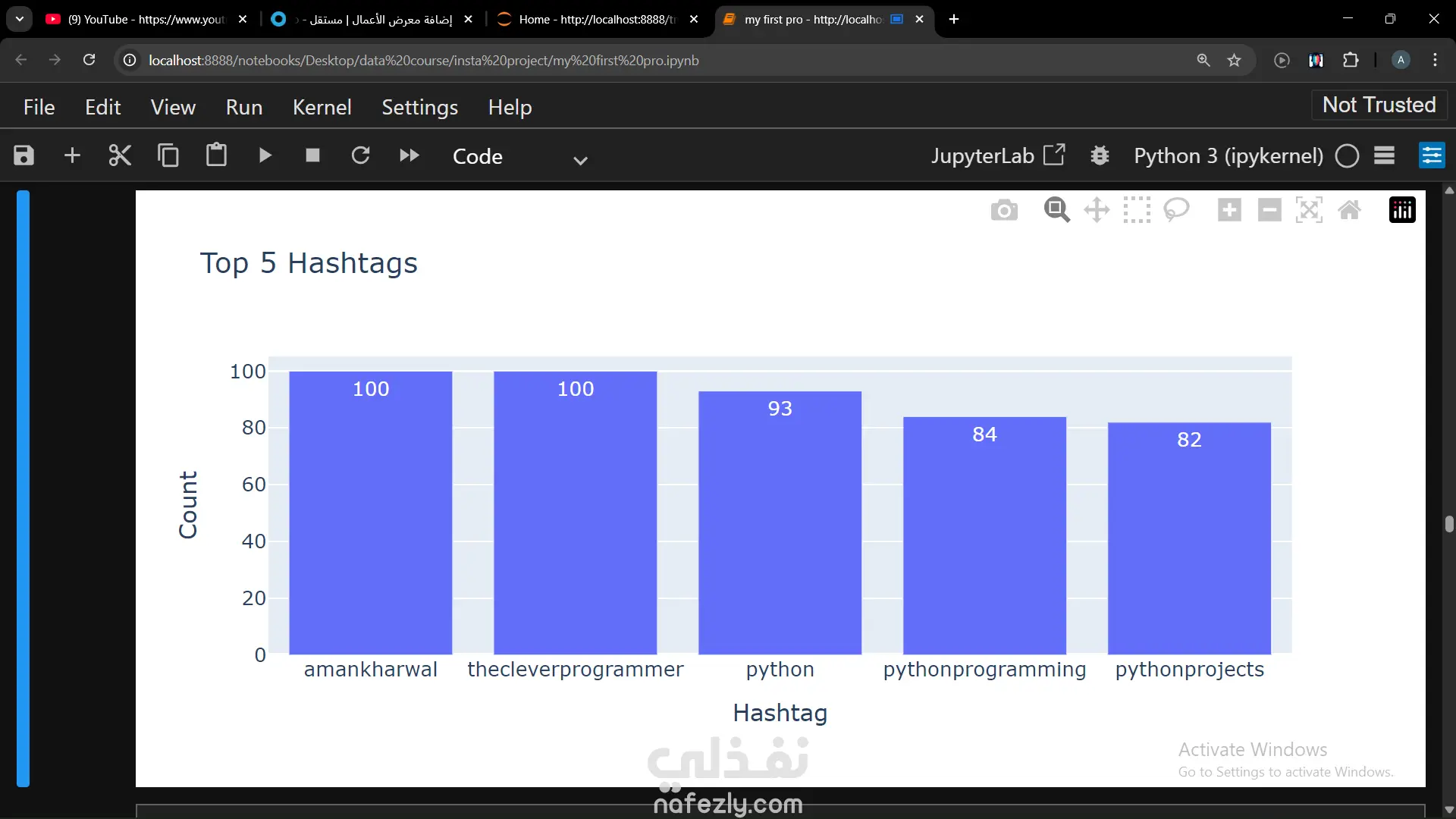 طلب منا مشروع تحليل بيانات انستجرام فكان المطلوب معرفة العوامل المساعدة لزيادة التفاعل والنشر فقمنا باستخدام بايثون بشكل اساسي للتعريف بالمشروع ثم قمنا بتنظيف البيانات باستخدام pandas بعدها قمنا بعرض صورة تفاعلية باستخدام plotly express ووجدنا ان زيادة عدد الهاشتاج يؤدي إلى قلة الظهور والتفاعل وكلما قل عدد الكلمات زاد التفاعل