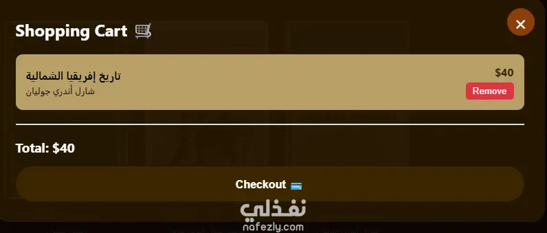 محاكاة دورة الشراء: نظام إضافة الكتب لعربة التسوق (Cart System) وحساب الإجمالي مع واجهة دفع (Checkout) وهمية لاستعراض تدفق البيانات