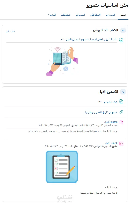 تصميم وتنظيم محتوى تعليمي رقمي على هيئة وحدات دراسية مقسمة إلى أسابيع، بحيث تتضمن كل وحدة مجموعة من العناصر التفاعلية مثل: الشرح، المهام، الاختبارات، والواجبات.