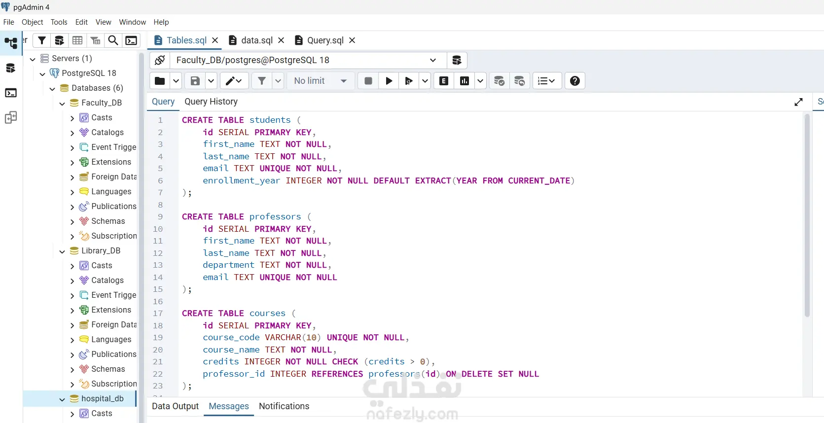 هذا المشروع يمثل هيكل قاعدة بيانات من نوع (Many-to-Many) مصمم لإدارة السجلات الأكاديمية. يربط النظام بين الطلاب، الأساتذة، والمواد الدراسية من خلال جدول تسجيل (Enrollments). بدلاً من مجرد تخزين البيانات، يعالج النظام علاقات وقواعد معقدة—مثل منع الطالب من تسجيل نفس المادة مرتين في نفس الفصل الدراسي، التعامل مع حالة المادة في حال مغادرة أستاذ المادة، واستخدام دوال التجميع (Aggregations) لحساب المعدل التراكمي (GPA) للطالب بناءً على الساعات المعتمدة في نفس لحظة الاستعلام.