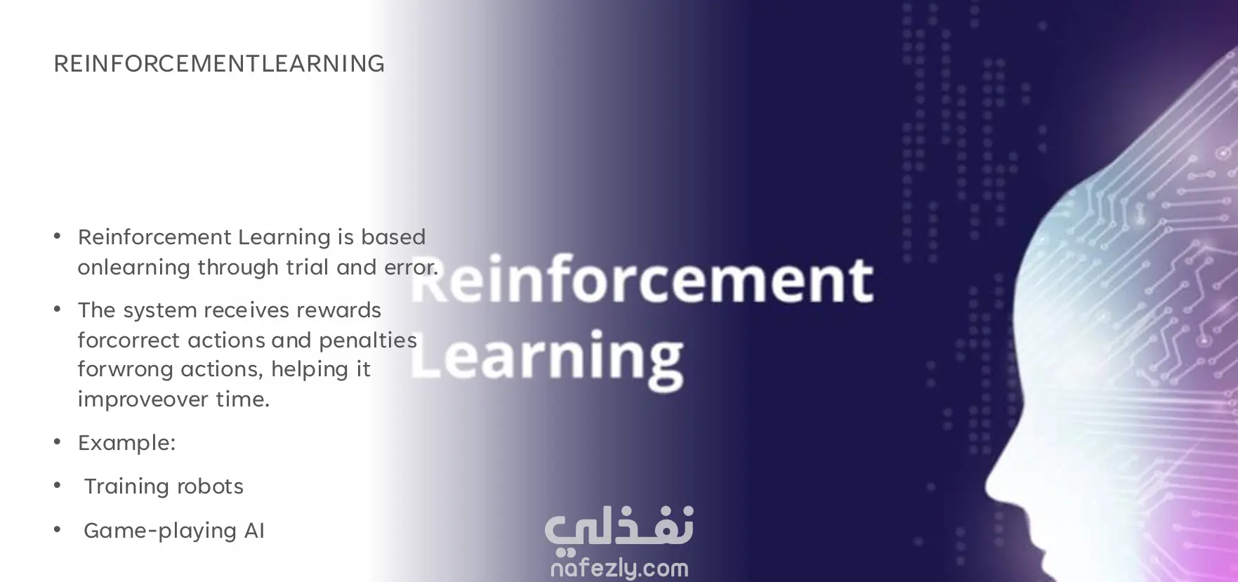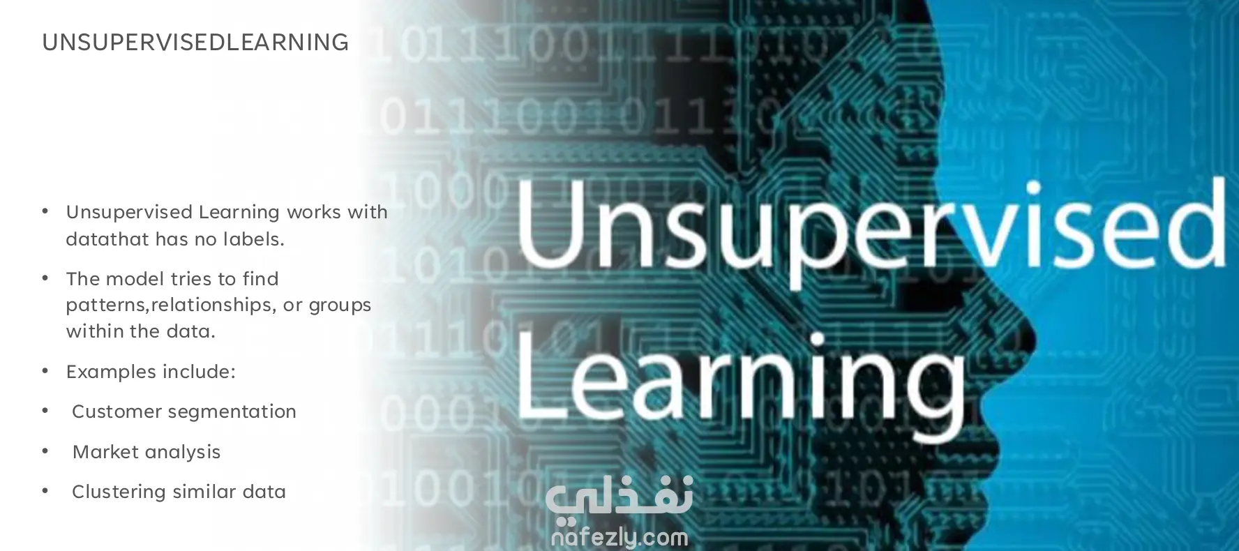 مشروع تعريفي عن Machine Learning (تعلم الآلة) يهدف إلى شرح المفهوم بشكل مبسط وسهل الفهم لغير المتخصصين. يتناول المشروع أساسيات تعلم الآلة، أهميته، وأنواعه المختلفة مثل التعلم الموجّه (Supervised Learning) وغير الموجّه (Unsupervised Learning) والتعلم بالتعزيز (Reinforcement Learning). كما يسلّط الضوء على أبرز تطبيقات تعلم الآلة في مجالات متعددة مثل الرعاية الصحية، الأمن السيبراني، والأنظمة الذكية، بالإضافة إلى عرض أشهر الخوارزميات المستخدمة والتحديات التي تواجه هذا المجال. تم إعداد المحتوى بشكل منظم وبأسلوب بصري بسيط لسهولة العرض والفهم، مما يجعله مناسبًا للعروض التقديمية التعليمية أو التمهيدية في مجال الذكاء الاصطناعي.