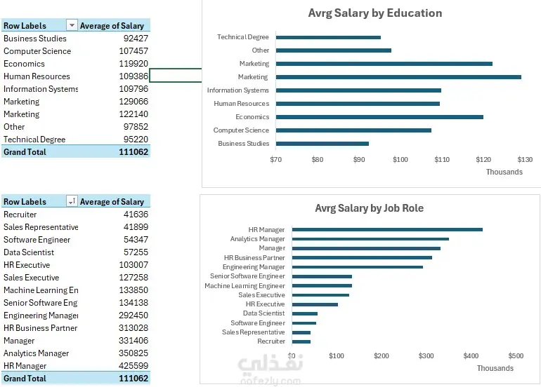 تم تنظيف البيانات لسهولة التعامل معها واجراء عمليات تحليلية لتقديم نتائج صحيحة ، ثم عمل جدوال ورسوم بيانيه لمعرفه ارتباط الاجور بالمستوي التعليمي