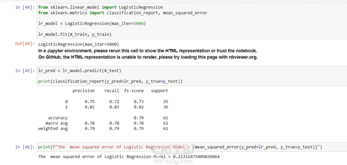 تطبيق أي موديل ذكاء إصطناعي وتعلم ألة أو تعلم عميق على داتاسيت وإظهار نتائج برسومات توضيحية مع نتائج بدقة عالية