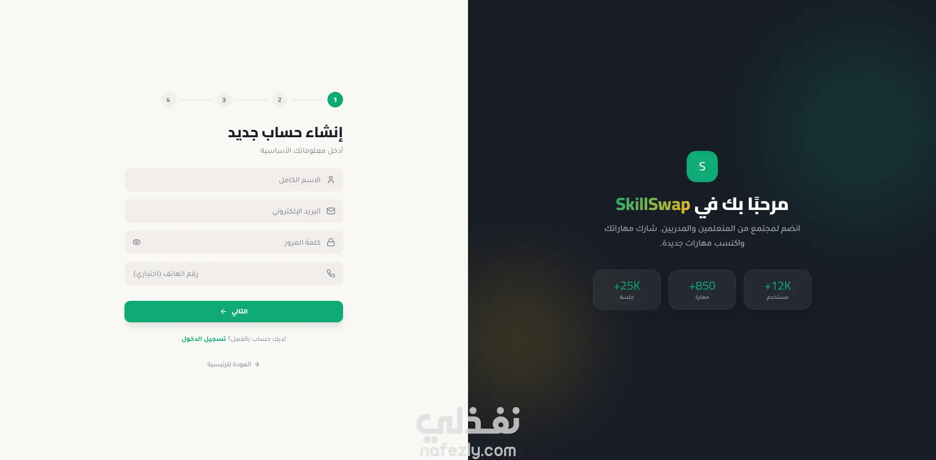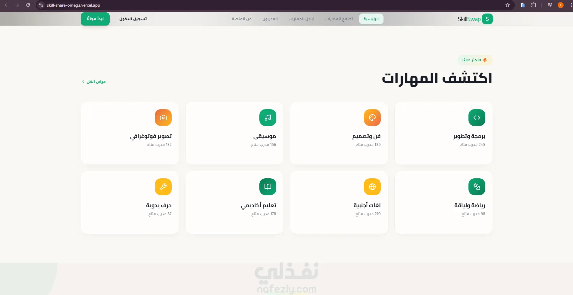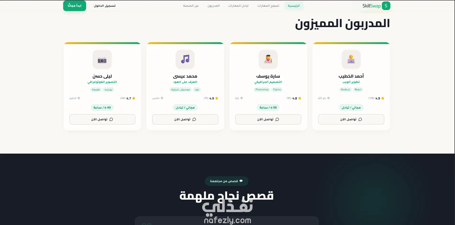 منصة SkillSwap لتبادل المهارات بين المستخدمين