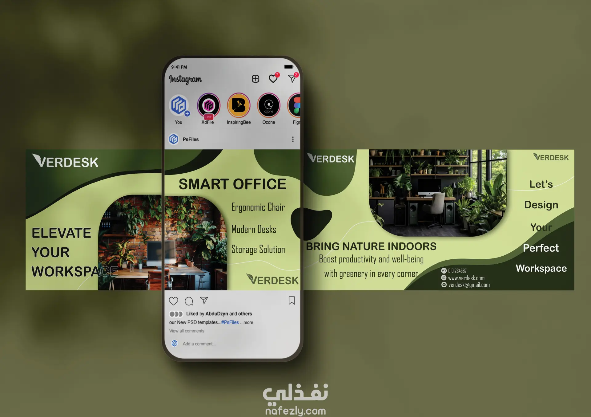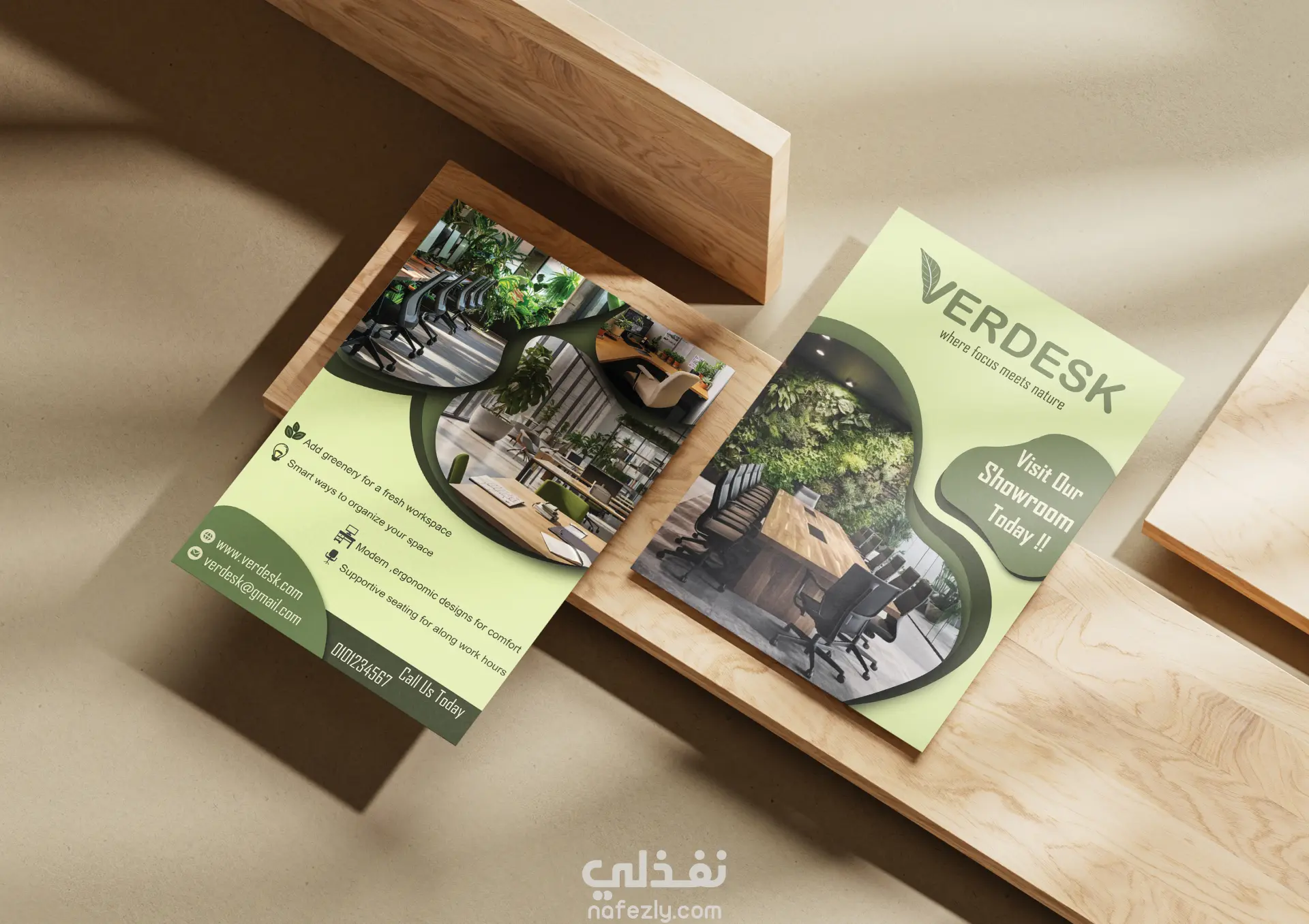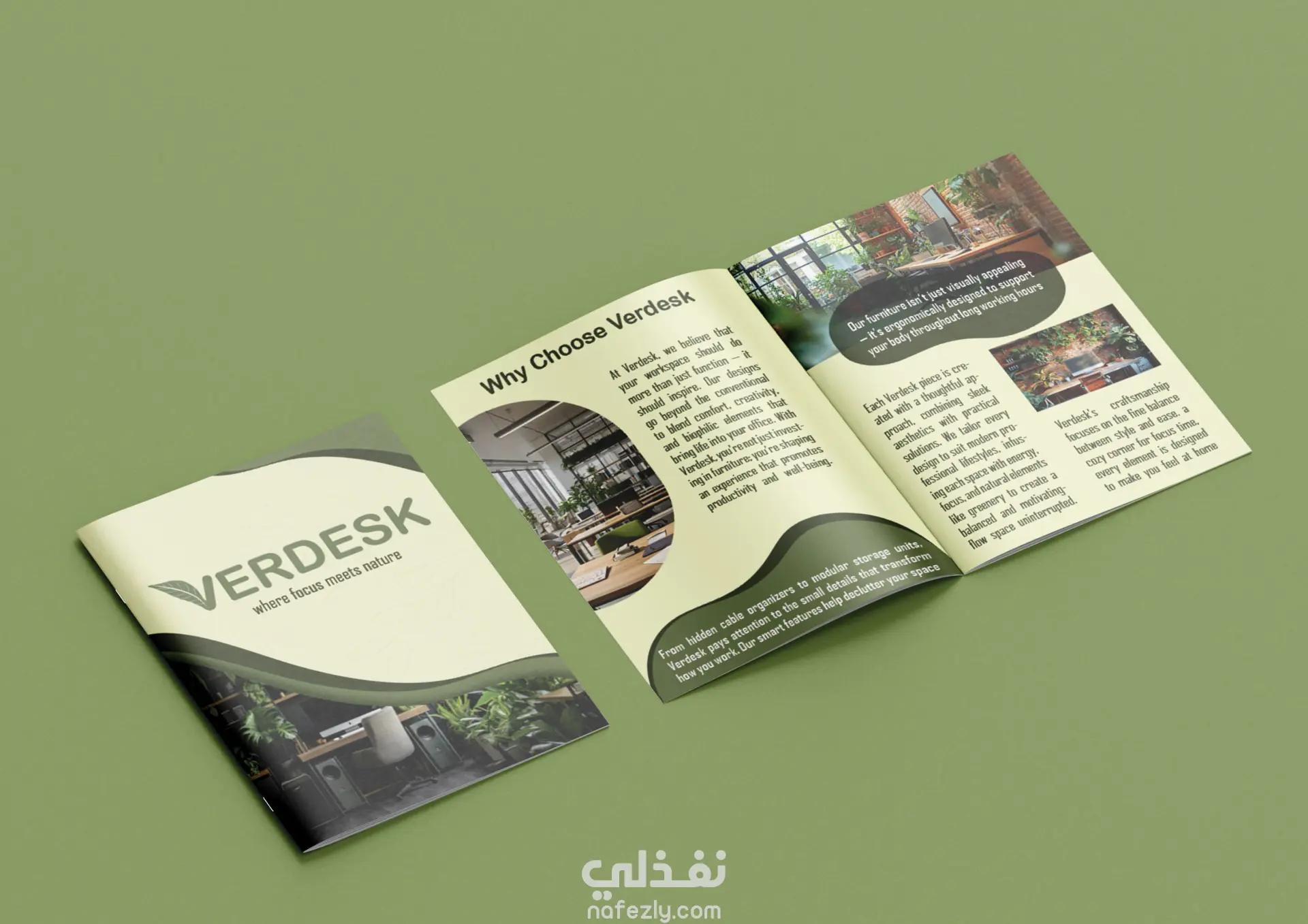 اختيار درجات اللون الأخضر الزيتوني والبيج لتعزيز الشعور بالهدوء والتركيز، مع خطوط عصرية تعكس الطابع المؤسسي.