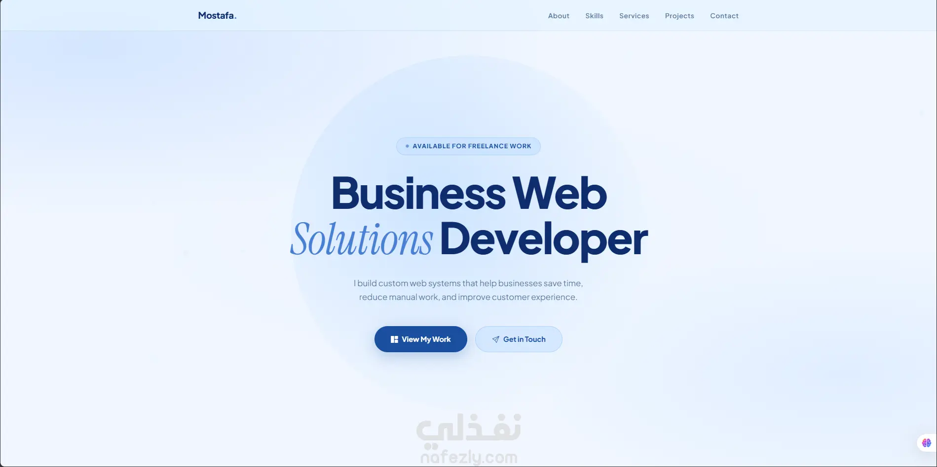 - تنظيم واضح للأقسام (About, Skills, Services, Projects, Contact)