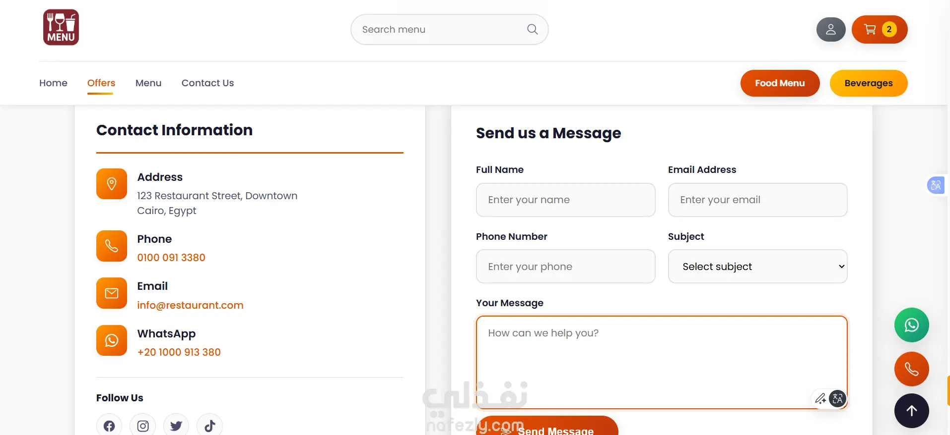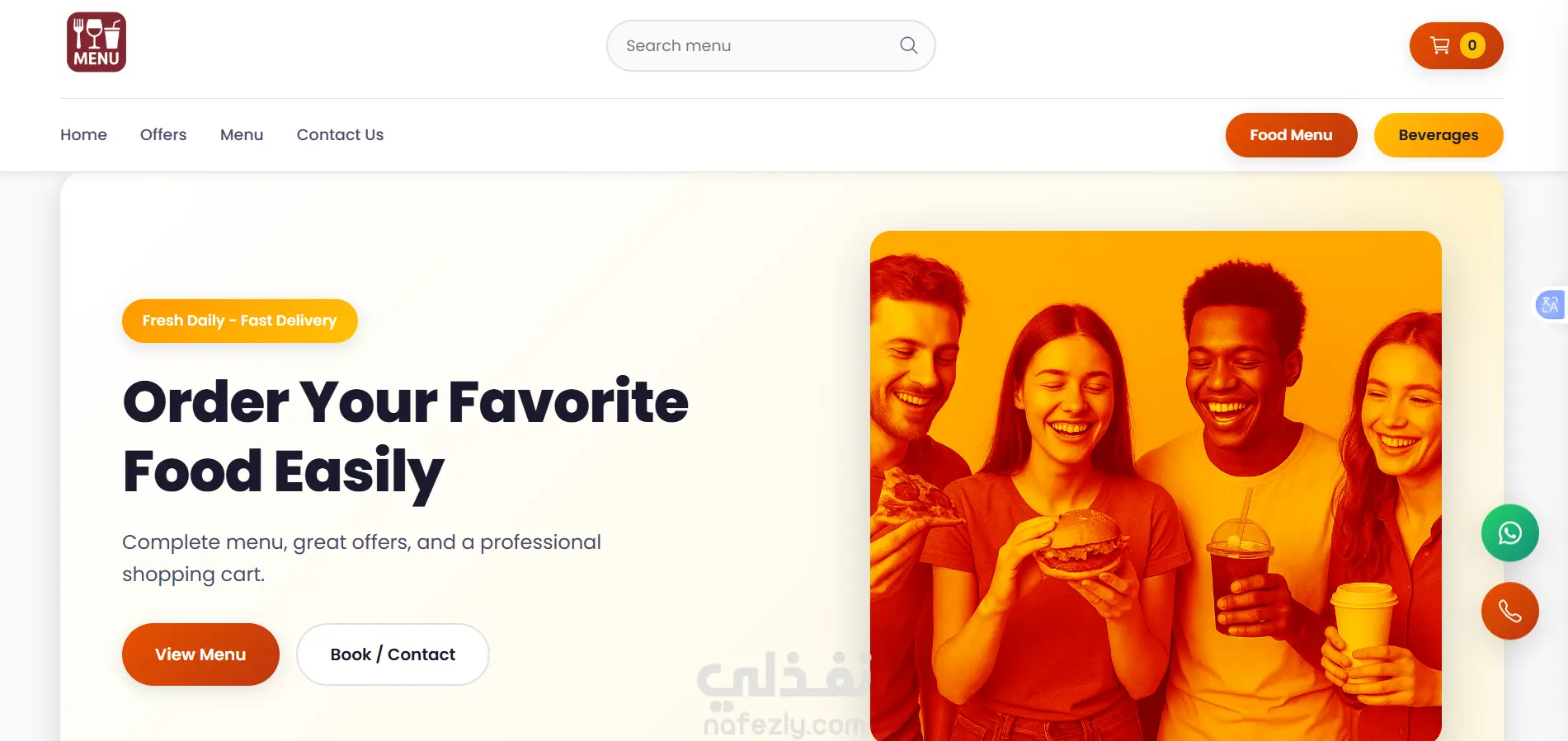 قمت بتصميم وتطوير موقع إلكتروني كامل لمطعم، يهدف إلى عرض قائمة الطعام بشكل جذاب وتحسين تجربة المستخدم وزيادة الطلبات.